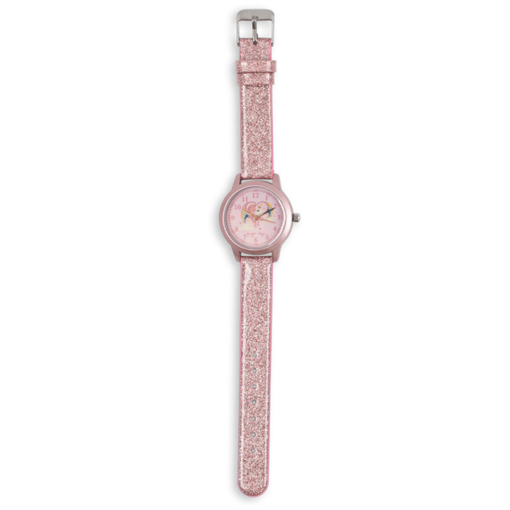 Introduce your child to the wonderful world of timekeeping with our adorable Konges Sløjd Horn Stars Kids Watch Glitter. Perfectly designed for little ones aged 3 and above, this watch features clear markings for hours and 5-minute intervals, complemented by a dot display for the remaining minutes. The dazzling glitter wristband and easy-to-use adjustable steel buckle make it not only a functional timepiece but also a stylish accessory. Crafted with a three-hand movement, this watch ensures accuracy and ease of reading, making learning to tell time fun and exciting. CE marked for safety, it's an excellent addition to your child's daily routine. Materials: Surface Glass Case Alloy Strap Pu