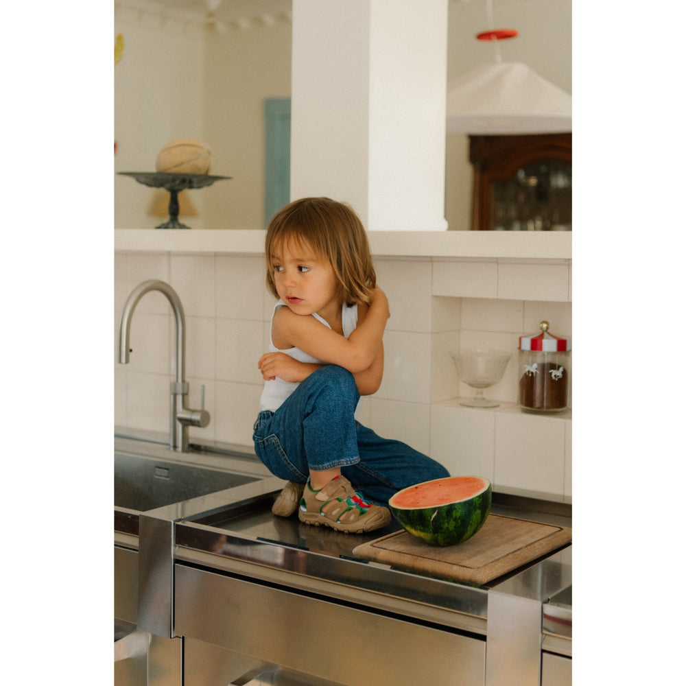Discover the charm and practicality of the Bisgaard Peanut Brown Trine Kjær X Herbert Velcro Shoe, perfect for your little one's adventures. Crafted from high-quality materials, these sandals feature a stylish velcro design for easy wear and a snug fit. The delightful peanut brown hue paired with fun patterns captivates the eye, while the soft interior ensures comfort throughout the day. Ideal for both casual outings and playful activities, these shoes embody durability and ease of care, promising lasting enjoyment and effortless maintenance.