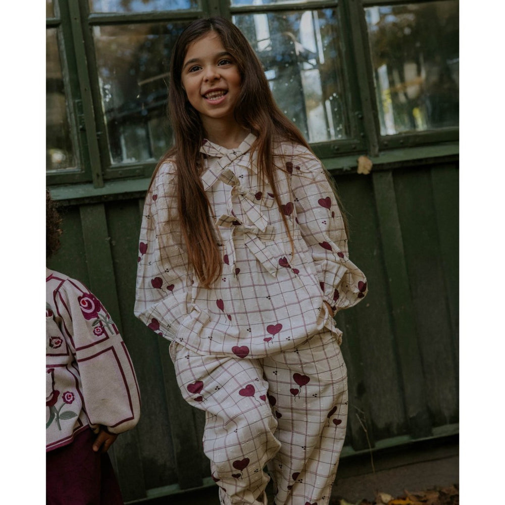 Brighten up your little one's wardrobe with the charming Fliink Sandshell Heart Aop Ilove Blouse, perfect for adding a touch of sweetness to any day. Crafted from 100% soft cotton, this long-sleeved, lightweight blouse ensures comfort and ease of wear. Featuring a delightful check and heart balloon print, it has voluminous sleeves accented with elastic cuffs and playful bows on the front for a feminine flair. The round neckline and fabric-covered buttons at the shoulder simplify dressing. This blouse pairs functionality with style, maintaining its shape and color with easy care—machine washable at 30°C on a gentle cycle. Ideal for both casual outings and special occasions, it combines adorable aesthetics with practicality for everyday enchantment.