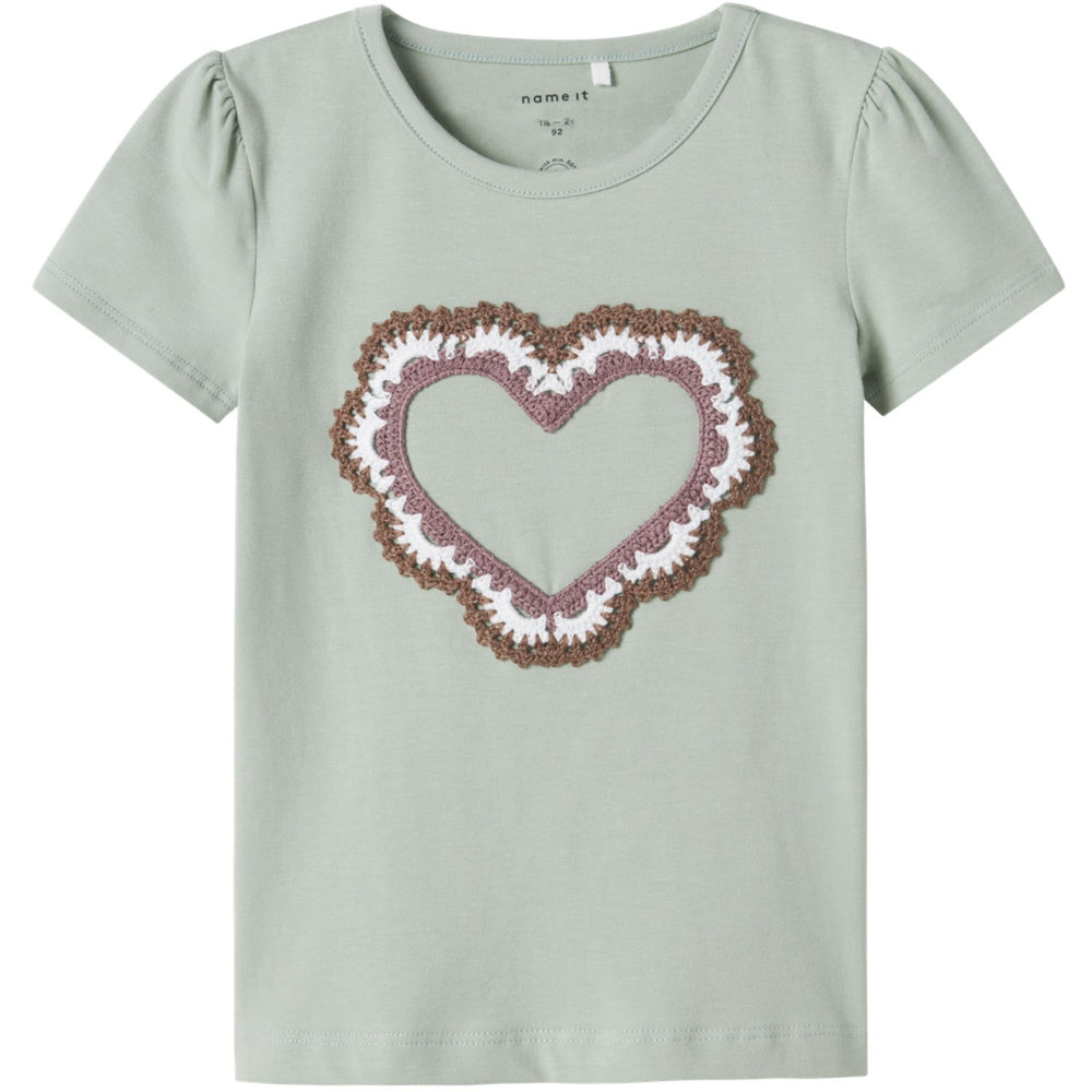 Discover the charm of the Name It Aqua Gray Jamaria T-Shirt, a delightful addition to any child's ensemble. This t-shirt, crafted from supple jersey, offers a lightweight and stretchy feel, ensuring supreme comfort and ease of movement. Featured in a soothing aqua gray hue, it showcases short, puff sleeves and a classic round neck, complementing both casual and dressier occasions. The standard fit promotes a relaxed wear, perfect for a day of playful adventures. Easily maintained, this top remains a practical and stylish choice for your little one's daily activities. Treat your child to both style and comfort with this versatile t-shirt.