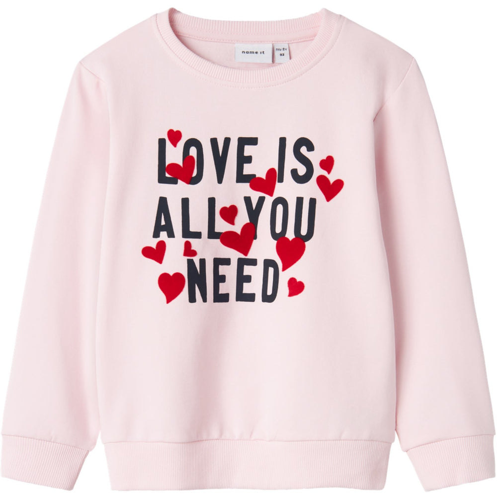Introducing the Name It Ballerina Dcare Regular Sweatshirt, where style meets comfort for your child. Crafted from unbrushed sweat fabric with a smooth exterior and soft loops inside, this sweatshirt ensures a cozy experience. Featuring a charming flock print that adds a soft and furry texture, and a classic round neck with long sleeves, it pairs well with any casual outfit. The regular fit ensures easy movement, perfect for playdates or relaxation. Embrace effortless care and endless comfort with this delightful addition to your child’s clothing collection.