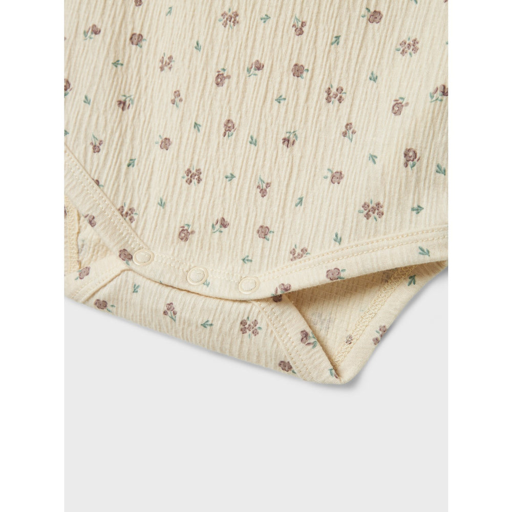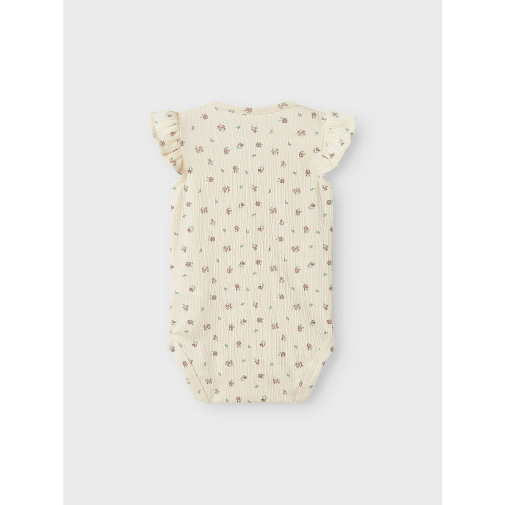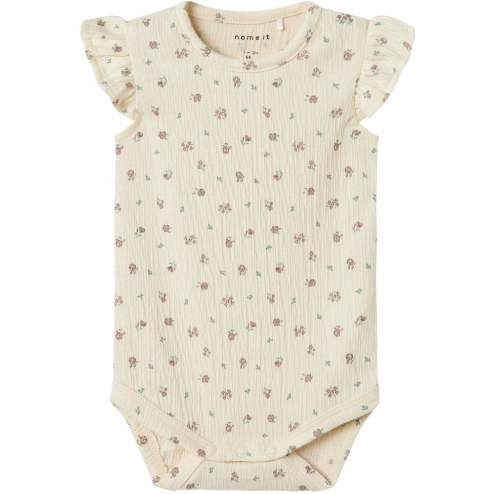 Dress your little one in the Name It Bleached Sand Jannis Capsl Body, a delightfully comfortable bodysuit perfect for year-round wear. Crafted from soft, stretchy jersey, this bodysuit features a gentle touch on both the outside and inside, ensuring comfort and freedom of movement. The charming cap sleeves and frilled cuffs add a touch of style, complemented by an eye-catching print that covers the entire surface. Complete with a round neck for easy dressing, this bodysuit combines fashion and function seamlessly. Remember to keep this garment away from fire for safety. Ideal for both daily wear and special occasions, it's a must-have for your child's comfort and style!