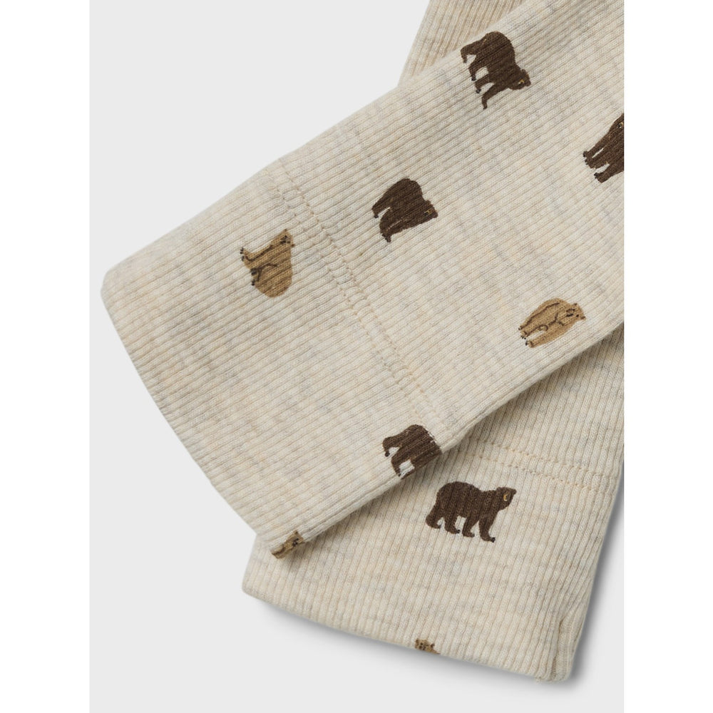 Introducing the Name It Peyote Melange Bear Dabu Leggings - perfect for your little one's wardrobe! Crafted from rib knit, these leggings guarantee a comfortable fit with their excellent stretchability and timeless vertical striped pattern. Xslim fit enhances mobility, while the fun, all-over print adds a dash of style. Mindful of safety, these leggings are also flame-resistant. Ideal for everyday wear, they promise durability and easy care. Perfect for mixing and matching, they’re a superb choice for active children, offering both style and comfort.