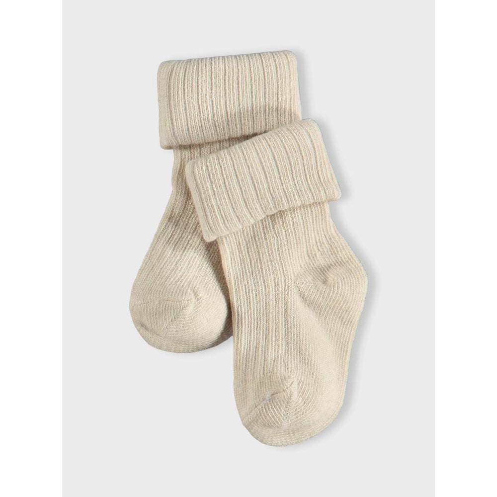 Introducing the Name It Peyote Melange Nobbu Socks, a must-have for any child's closet! Crafted with a snug rib knit design, these socks offer superior elasticity and comfort. Featuring a classic vertical stripe pattern in a versatile color, they ensure both style and function. Ideal for all seasons, these durable socks will keep up with your child's active lifestyle while adding a touch of timeless charm to any outfit. Let your little one step out in comfort and style, no matter the occasion!