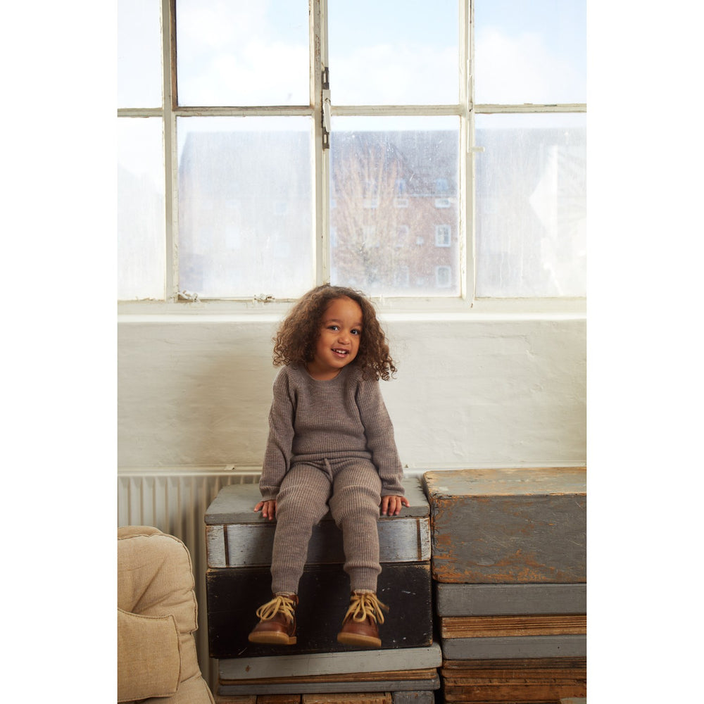 Dress your little one in the coziness of Copenhagen Colors' Natural Melange Merino Classic Rib Blouse. Crafted from 100% merino wool, this blouse exudes warmth and softness, ideal for sensitive young skin. It features a versatile solid natural melange color alongside options with delightful stripes, adding a touch of playful charm to your child's wardrobe. The design prioritizes comfort and free movement, making it perfect for active toddlers and infants. This flexibility ensures that playtime is never compromised. Pair it seamlessly with our Merino Rib Leggings to complete a snug, stylish ensemble that stands out in both comfort and style. Durability is key, hence the merino wool not only provides exceptional warmth and breathability but also ensures that the blouse withstands frequent wear and washing. For lasting use, adhere to the specific wash and care instructions provided. This natural, fashionable piece is not just about aesthetic appeal but also about promoting ease of movement and durability in children's everyday adventures.