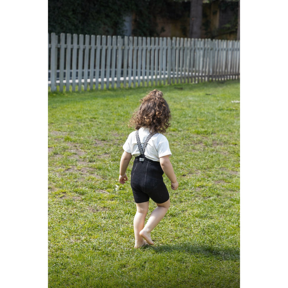 Introduce your little one to the charming world of Silly Silas with these Classic Black Checked Shorty Tights With Braces. Crafted from soft, breathable materials, these shorts feature a timeless black check pattern. Ideal for toddlers, they offer a comfortable fit and easy mobility. The adjustable braces ensure they stay snug, no matter the adventure. Perfect for both play dates and family outings, these tights blend style with practicality, making them a go-to in your child’s wardrobe. Care is effortlessly simple, ensuring these shorts remain your favorite pick time and again.