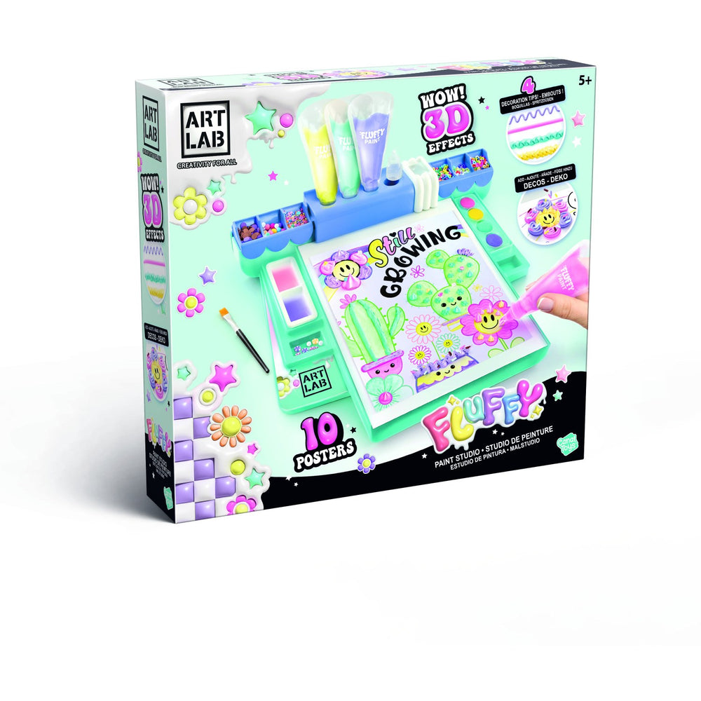 Explore the wonders of artistic expression with the Art Lab Fluffy Paint Studio! This kit is perfect for children aged 6 and older, providing everything needed to create ten uniquely mesmerizing 3D posters. With a choice of paint types, colors, and tips, kids can experiment with various dynamic effects. The included fluffy and water paints, along with an array of decorations and glitter, ensure each piece sparkles with creativity. The Fluffy Paint Studio not only amplifies artistic skills but also enhances fine motor abilities and encourages cognitive development through color and pattern recognition. Its compact design makes it easy to store and the materials are simple to clean up, making it an ideal activity for both home and on-the-go fun. Watch as your child enjoys endless hours of engaging and educational play, bringing imaginative ideas to life with safety and ease! Extra: Make stunning 3D paintings.