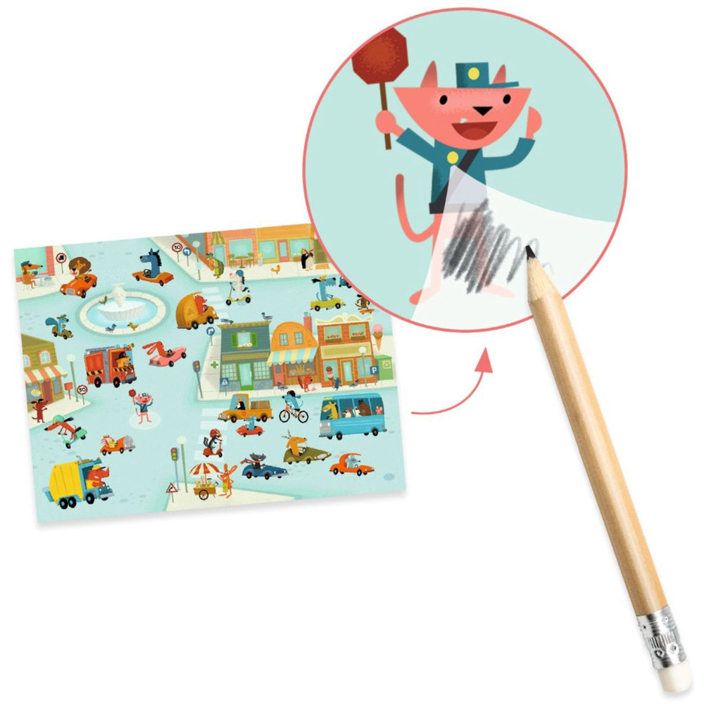 Playing with Djeco Decals inspires creativity and stimulates the imagination of little builders and adventurers. With three detailed backgrounds and more than 100 different vehicle images, your child will have the opportunity to create their own dynamic city scenes. The set is designed to be easy for kids to use: choose a background, apply a picture and rub it firmly with a pencil. This interactive set is not only entertaining but also helps to develop fine motor skills and increase understanding of connections through play.