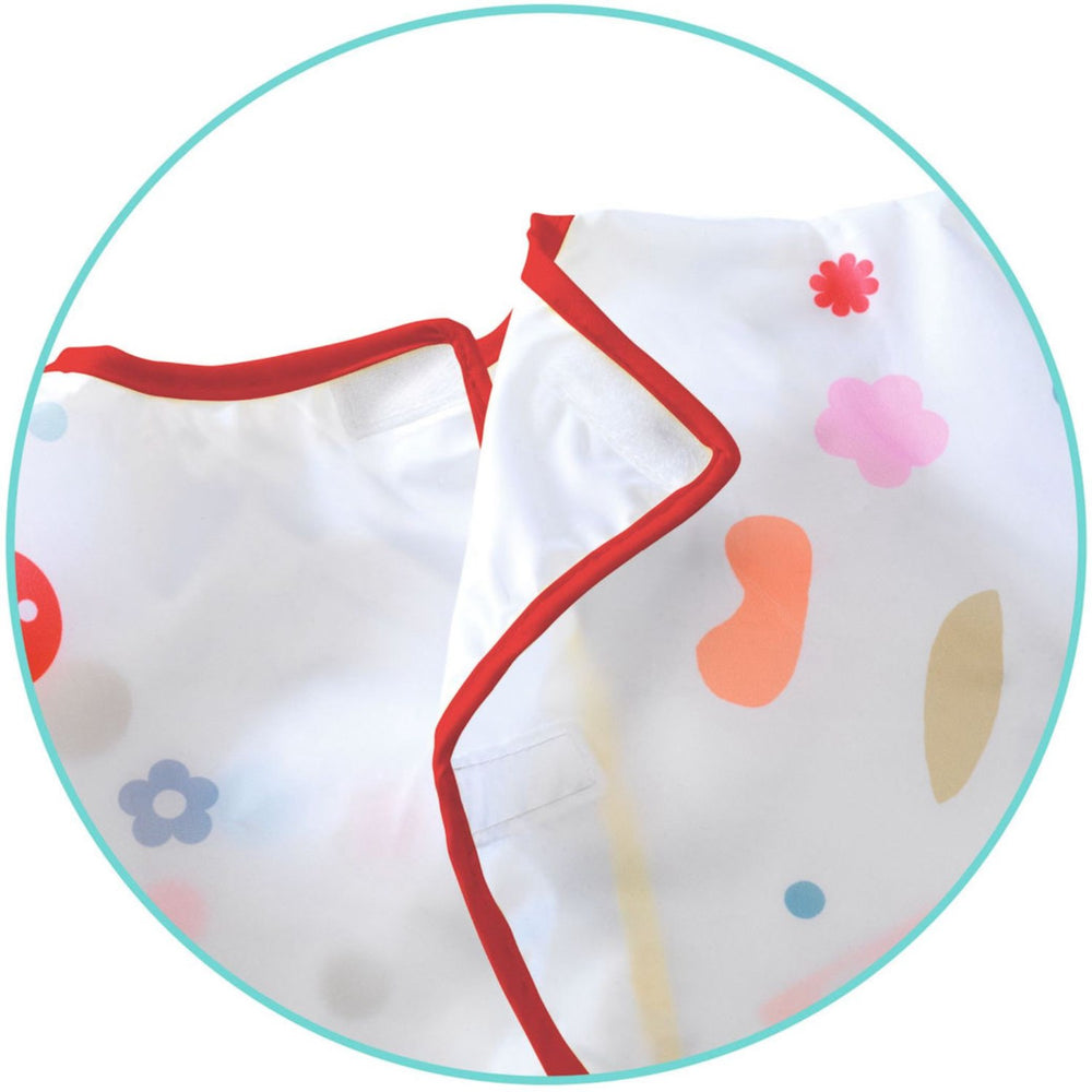 Comprises: 1 painting apron with pocket. Length: 51 cm. Sleeve length: 41 cm. 3 velcro fasteners on the back