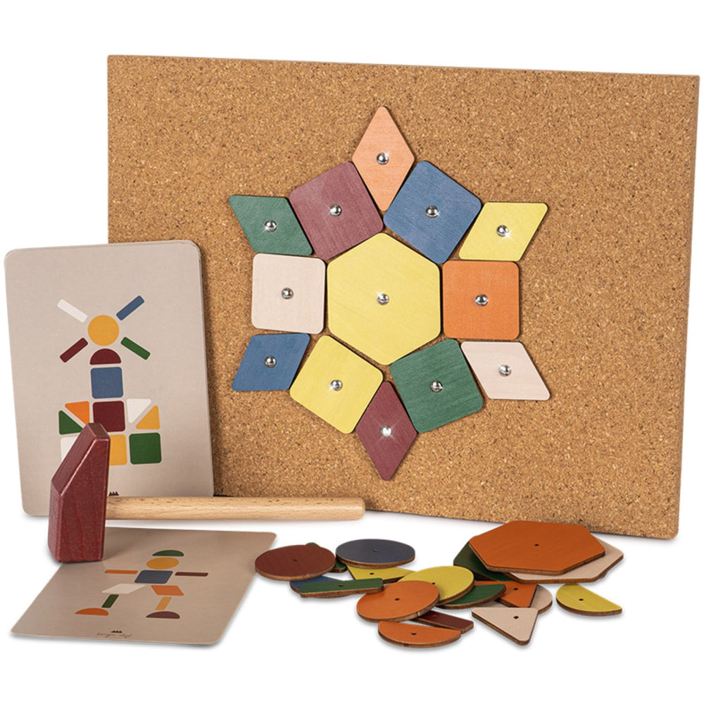 Encourage creativity in young crafters with the Konges Sløjd Multi Cork Hammer Game! This engaging set is designed to spark imagination by allowing kids to create their own patterns using 42 wooden pieces on a cork board. Perfectly safe and suitable for children aged three years and up, this toy includes a sturdy beechwood hammer, 50 metal nails, and 12 inspiring design cards—the options for fun and learning are endless! All materials are FSC™-certified, ensuring they come from responsibly managed forests. This game not only promotes fine motor skills but also provides an excellent educational experience by encouraging problem-solving and artistic expression. Compact and easy to store, it is ideal for any playroom. Enjoy hours of interactive and educational play with our eco-friendly and safe Cork Hammer Game! Age: 3Y+ Materials: A Mix Of Materials Certifications: FSC MIX CREDIT