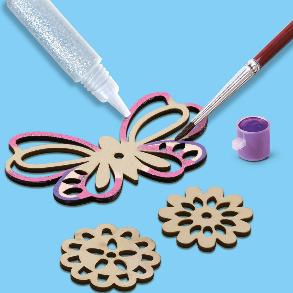 Unlock the magic in your child's room with the SES Creative String Lights Nature Design! Perfect for kids aged 6-10, this DIY kit lets your little artist bring a touch of nature indoors. The kit includes 8 glowing colored LED lights on a string, destined to create a cozy atmosphere. Your child can personalize each of the 8 wooden butterflies and flowers using a colorful array of paints, including shimmering silver glitter glue and vibrant self-adhesive diamonds. Not only does this provide a delightful arts and crafts experience, but it also enhances fine motor skills and promotes creativity.