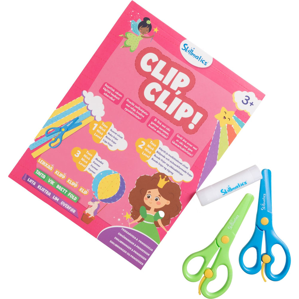 Discover a world of magical creativity with the Skillmatics Clip Clip Unicorn set! This enchanting craft kit, featuring adorable princesses and unicorns, allows your child to master scissor skills through a series of fun, imaginative tasks. Designed for safety and non-toxic, the set includes paper, two child-friendly scissors, and a glue stick, ensuring a secure cutting experience.