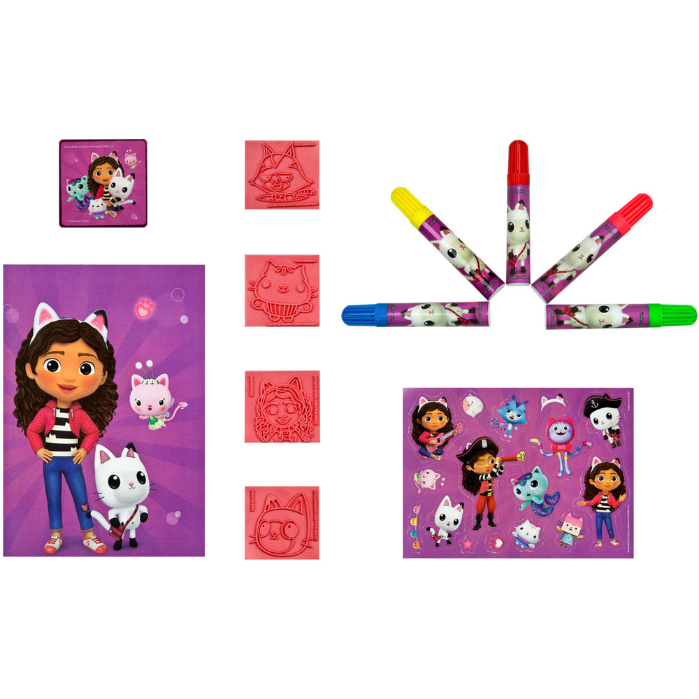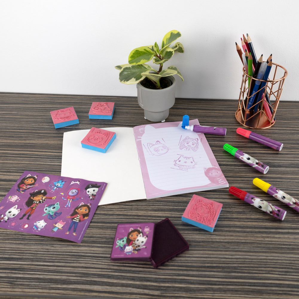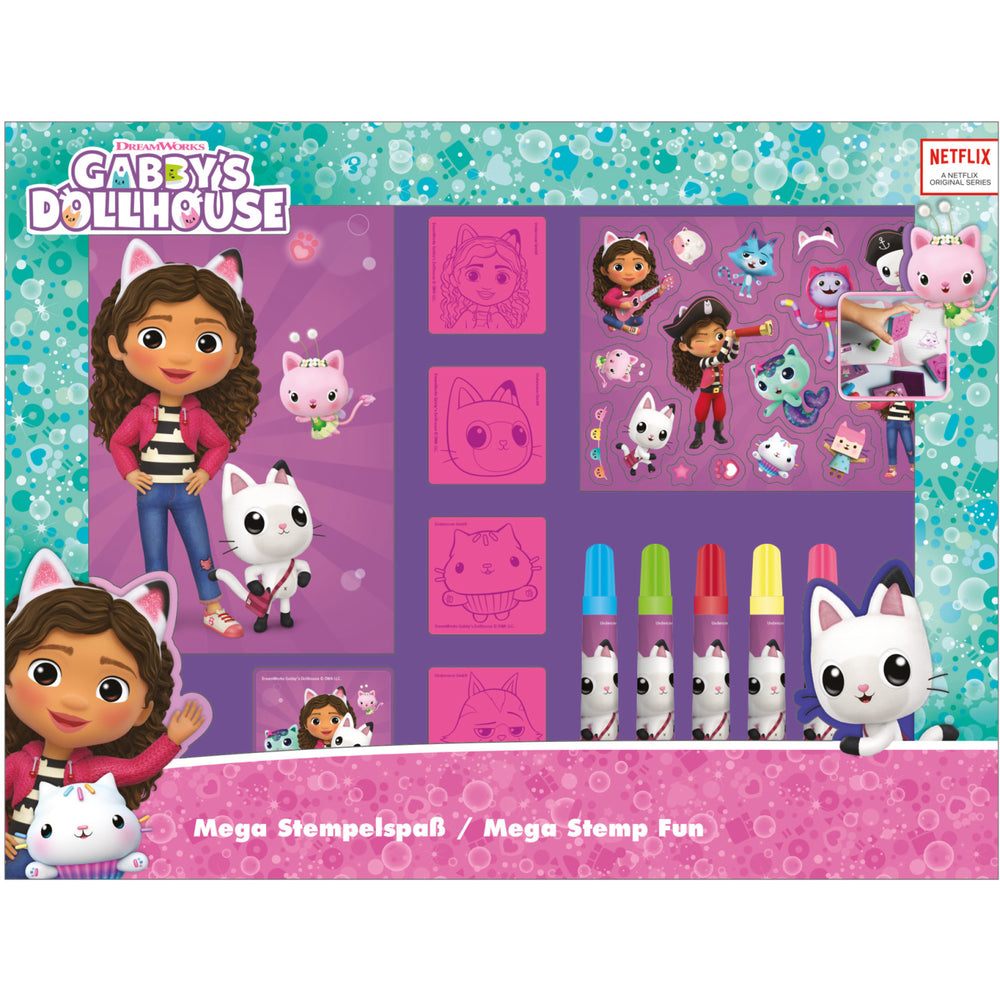 Dive into creative play with Gabby's Dollhouse Stamp Set from Undercover, perfect for little artists aged 3 and up. This charming set includes four unique stamps, a stamp pad, vibrant stickers, an engaging coloring book, and five colorful crayons. It's designed with child-safe materials, ensuring robust safety, and offers endless interactive and educational fun. Easily portable, it stores neatly away, making it ideal for tidy playtimes and on-the-go entertainment.