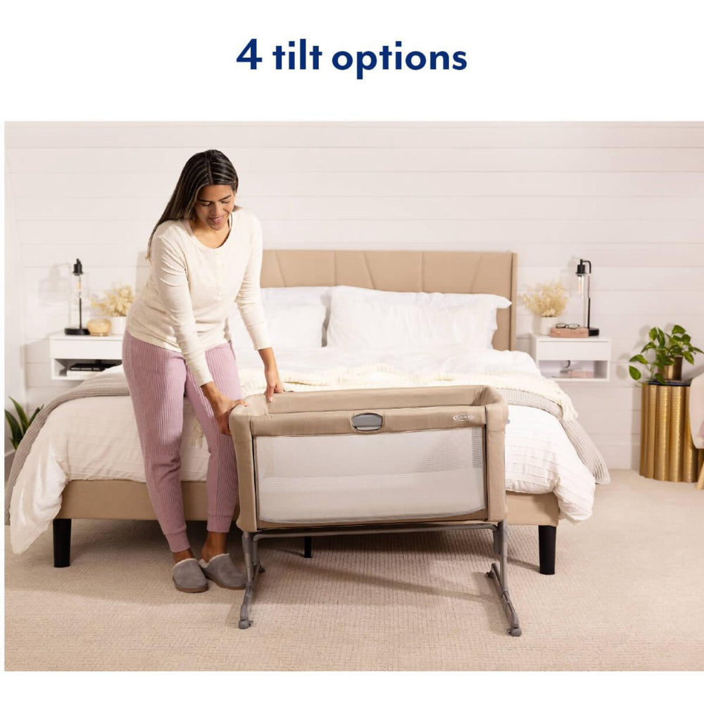 Discover the Graco Oatmeal Sweet2Sleep™ Bedside Crib, expertly designed to offer the utmost comfort and safety for your little one from birth to approximately 6 months (max. 9kg). This bedside crib boasts a user-friendly design with an easy-access side rail that adjusts with one hand and multiple height settings to align perfectly with your bed. The secure wraparound strap ensures the crib stays attached to your bed for added safety. The Sweet2Sleep™ Crib not only brings peace of mind but also features a spacious sleeping area with four tilt options to ease indigestion and a breathable, soft mattress that promises serene slumber for your baby. The visibility and ventilation offered by easy-view mesh sides keep your baby comfortable throughout the night. Lightweight yet durable, this crib has lockable wheels for easy mobility and includes a carry bag, making it perfect for travel and storage. Cleaning is effortless with its sponge-clean mattress and machine-washable carry bag. Ideal for parents seeking a safe, functional, and comforting sleeping solution for their baby, the Sweet2Sleep™ Crib ensures your little one's early months are as soothing as they are safe.