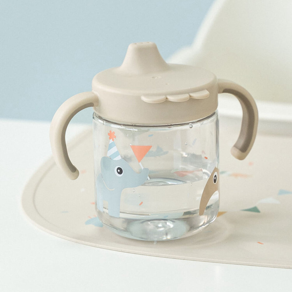 Introducing the DonebyDeer Celebration Sand Learning Sippy Cup, designed to make the transition to drinking independently a joyful breeze for your little one! This cup features a silicone-sealed spout, minimizing spills and simplifying sipping. Plus, the non-slip handles are tailored for small hands, ensuring a secure grip. Crafted to endure daily adventures and drops, it's also microwave and dishwasher safe, blending durability with easy maintenance. Ideal for busy toddlers and parents, it offers both convenience and a fun learning experience. Materials: Tritan. Lid: PP, TPE and silicone. Measurements: Ø 7.5 x H 11 cm.