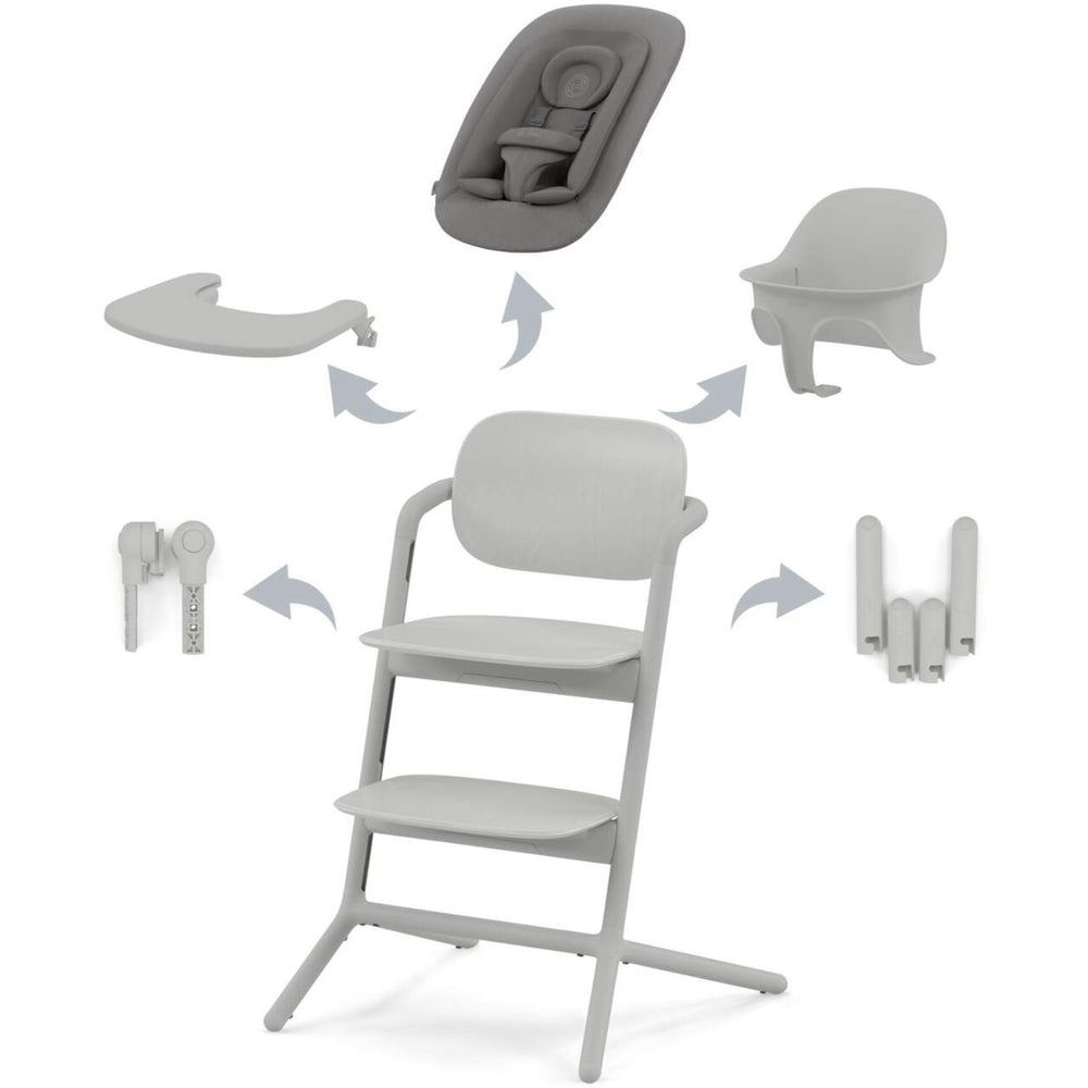 Introduce your little one to family meal times right from birth with the Cybex Suede Grey Lemo 4-in-1 Set, a multifunctional highchair designed to grow with your child from newborn to 99 years. This versatile piece seamlessly adapts to various life stages with features that prioritize safety, comfort, and ease of use.
