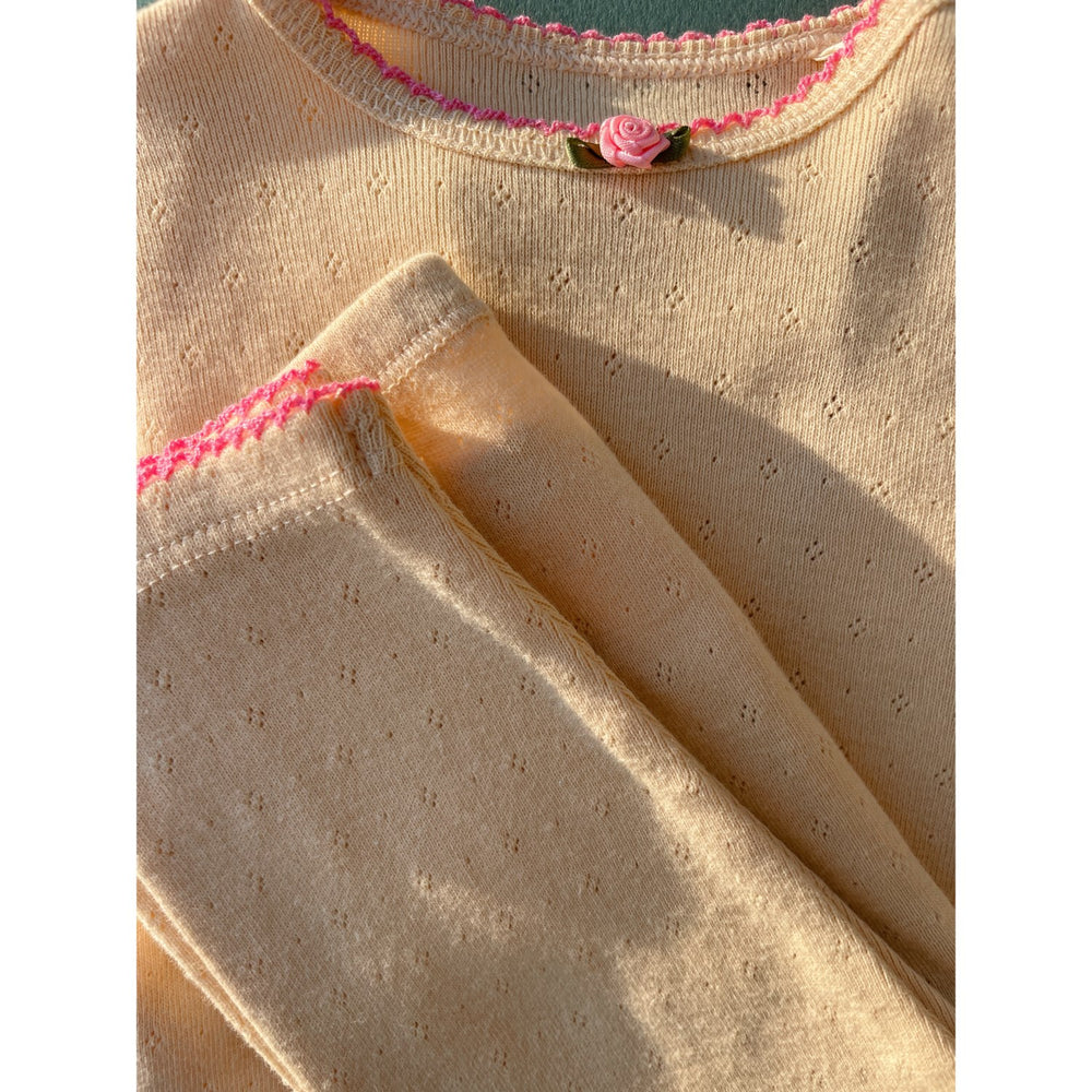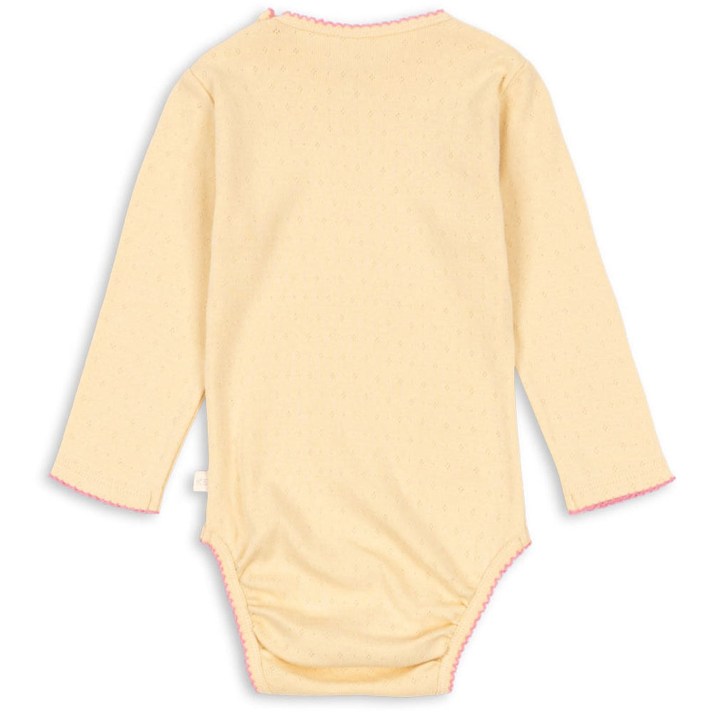 Wrap your little one in gentle luxury with the Konges Sløjd Golden Fleece Minnie Body. Crafted from 100% GOTS-certified organic cotton, this soft cotton bodysuit features a charming pointelle design, adding a touch of elegance. Practical snap buttons at the crotch ensure easy dressing and undressing. Ideal as a cozy base layer or a stylish staple, its organic fibers promise both comfort and durability, making it an essential part of your child's wardrobe.