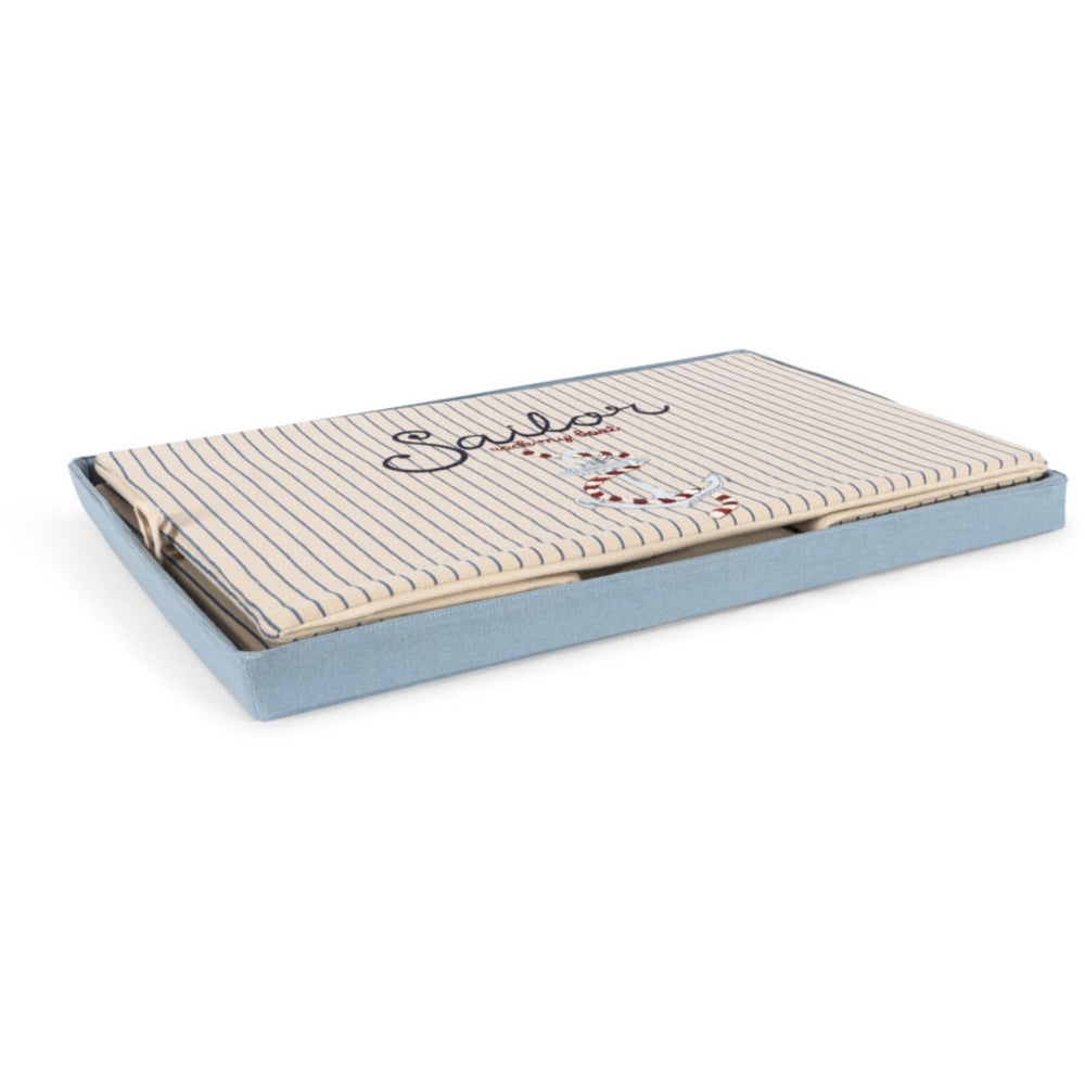 Transform your child's room with the Konges Sløjd Sailor Storage Basket Large—a stylish and practical solution for tidying up. This large cotton fabric basket offers ample space for toys, Legos, and various knick-knacks, ensuring a clutter-free environment. Crafted from 100% cotton, it's safe and easy to handle, even for little ones. When not in use, simply fold and tuck it away. The dimensions are H: 30cm, W: 47cm, and D: 32cm, perfectly sized for any child's room. Its charming design not only decorates but also makes organizing a fun and educational activity. Materials: 100% Cotton