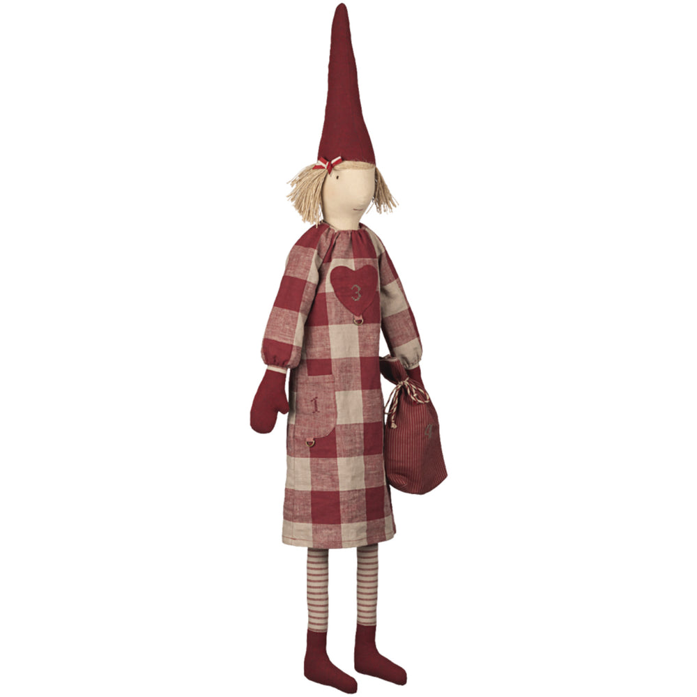 Introduce a magical touch to your festive season with the Maileg Pixy Advent Calendar! Perfect for building anticipation, this charming elf features four delightful pockets designated for surprises on each of the last four Sundays before Christmas. Designed with a convenient neck strap, it's a breeze to display, adding both whimsy and style to your children's room decor. This advent calendar is not just decorative but serves as an engaging way to teach children about patience and the joy of expectation. Materials: 100% Cotton Washing instructions: Machine wash 30 degrees C, no bleaching, do not tumble dry, no ironing, do not dry clean.
