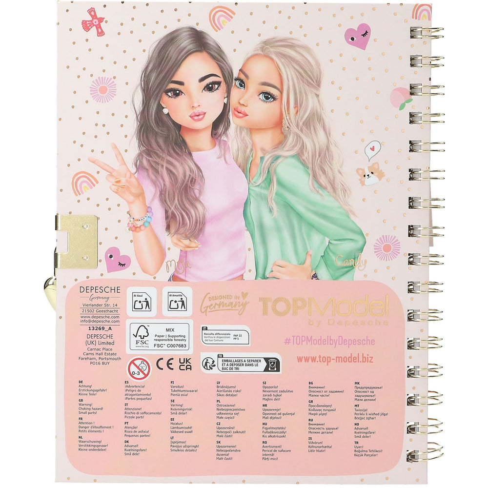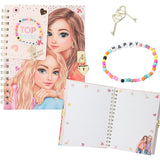 Discover the enchanted world of journaling with the TOPModel Diary, complete with a golden heart clasp and heart-shaped keys, designed to secure your little one's secret thoughts safely. This delightful diary, adorned with colorful illustrations and neat lines inside, also comes with a vibrant pearl bracelet featuring a cheerful "HAPPY" statement. It's not only a fun way to encourage writing and creativity but also includes a sticker sheet with fantastic TOPModel stickers for an added touch of fun. Perfectly portable, it ensures your child's ideas are secure and their imaginations engaged, wherever they go.