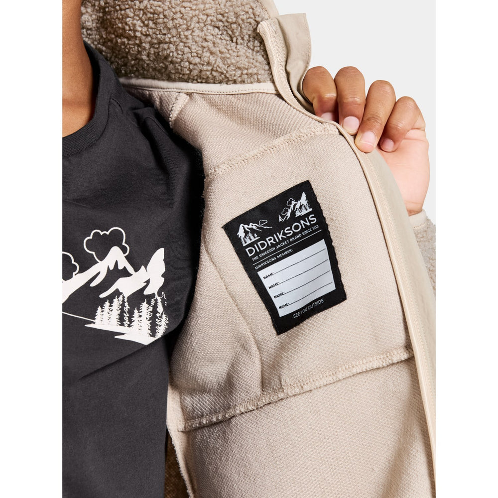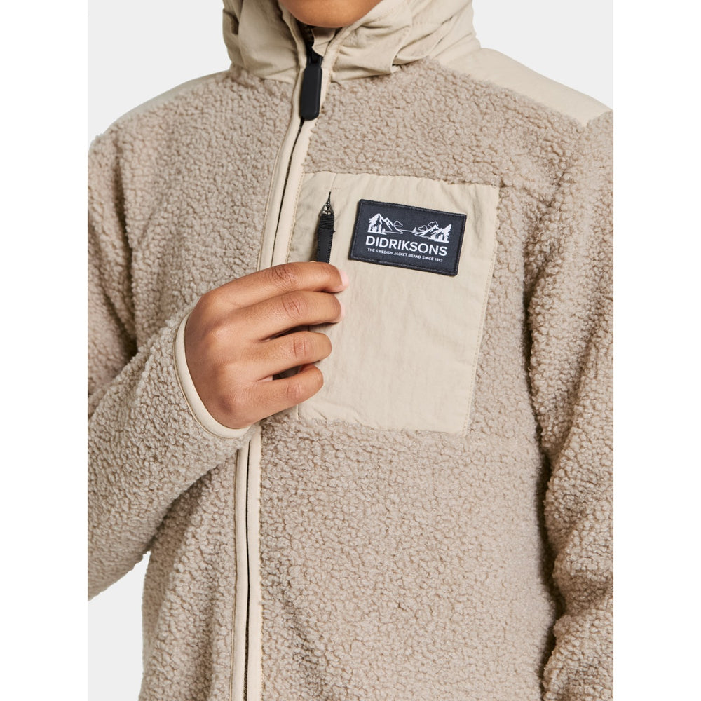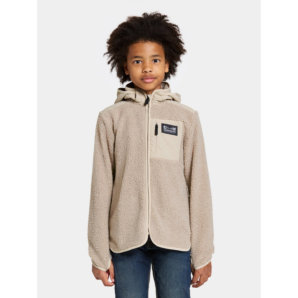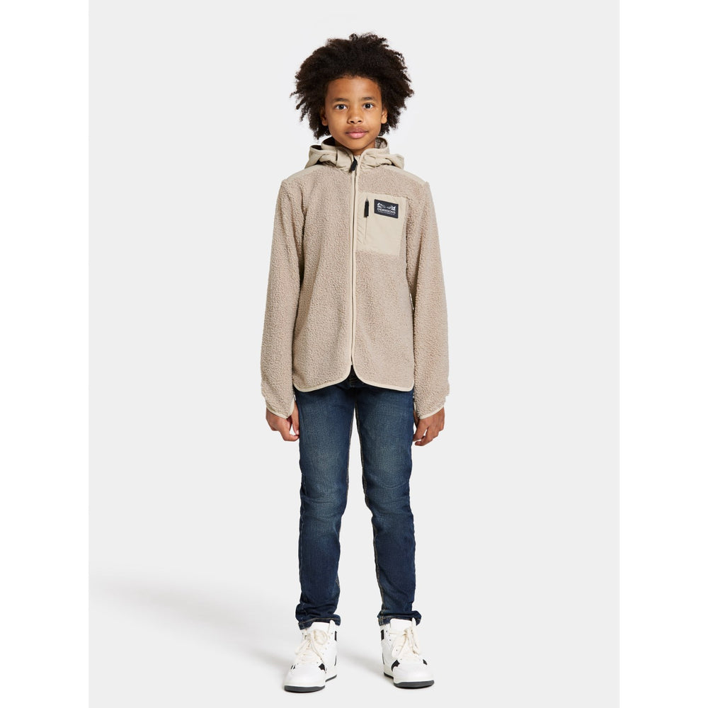 Introducing the Didriksons Beach Beige Exa Kids FZ 2, a cozy fleece must-have for your little one's wardrobe. Crafted from soft, durable fleece, this jacket charms with its soothing beige color and practical full-zip design. It offers a comfortably snug fit, ideal for layering during play or adventure. Perfect for chilly days, this piece promises warmth and style with easy care instructions. Ideal for both daily wear and outdoor fun!