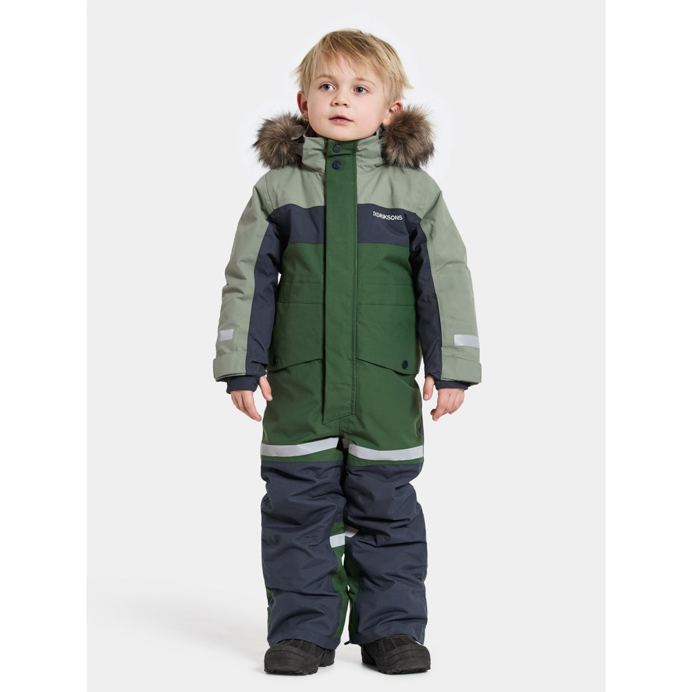 Discover the ultimate in winter comfort and style with the Didriksons Light Moss Bjärven Kds Cover 4, tailor-made for adventurous kids! This high-performing snowsuit is crafted with precision fabric mapping to ensure warmth and durability, and features a convenient hanger inside for easy drying. The adjustable and detachable hood comes with synthetic fur, enhancing the suit’s adaptability and style. Weather any storm with adjustable leg ends equipped with velcro, silicone foot straps, and a snowgaitor with anti-slip elastic to keep snow out.