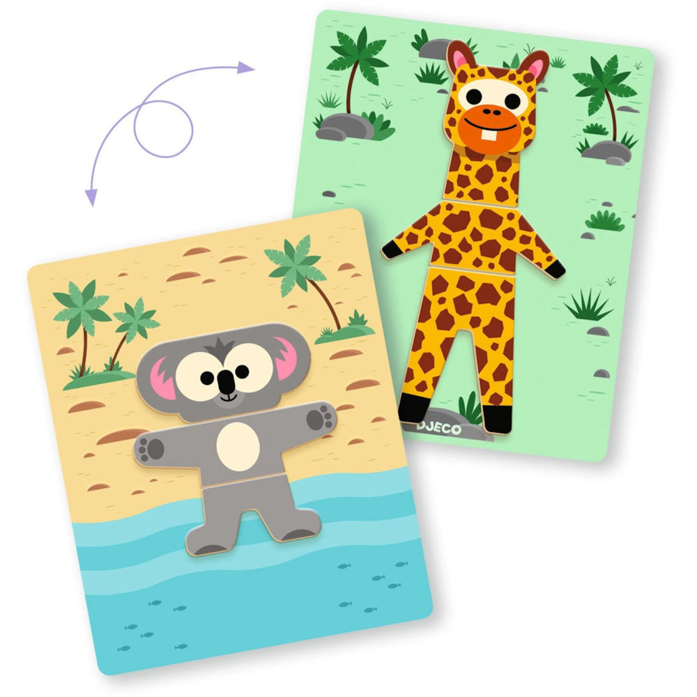 • They recreate the 12 animals shown on the cards, choose the right side of the box and create fun combinations