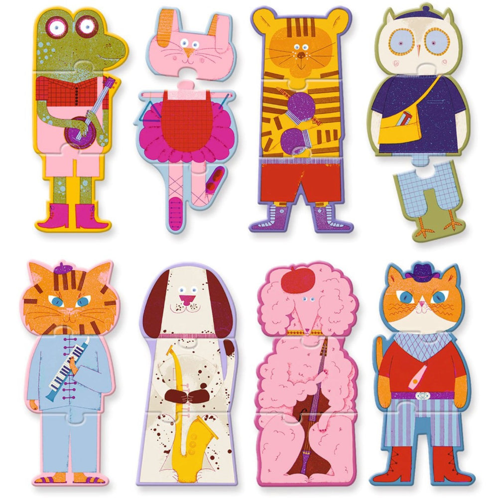 Discover the joy of music and animals with the Djeco Puzzle Trio Orchestra, perfect for children aged 3 and up. This playful set includes eight vertical puzzles, each featuring three sturdy cardboard silhouette pieces that are easy to handle and assemble. Not only does it foster fine motor skills and enhance observational abilities, but its self-correcting design also ensures that only the correct pieces fit together, providing a delightful and educational experience. Compact and simple to store, it's an ideal choice for both entertainment and learning at home.