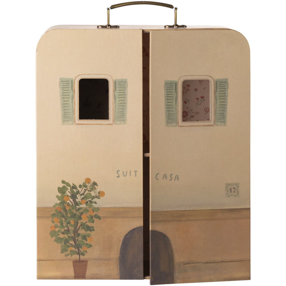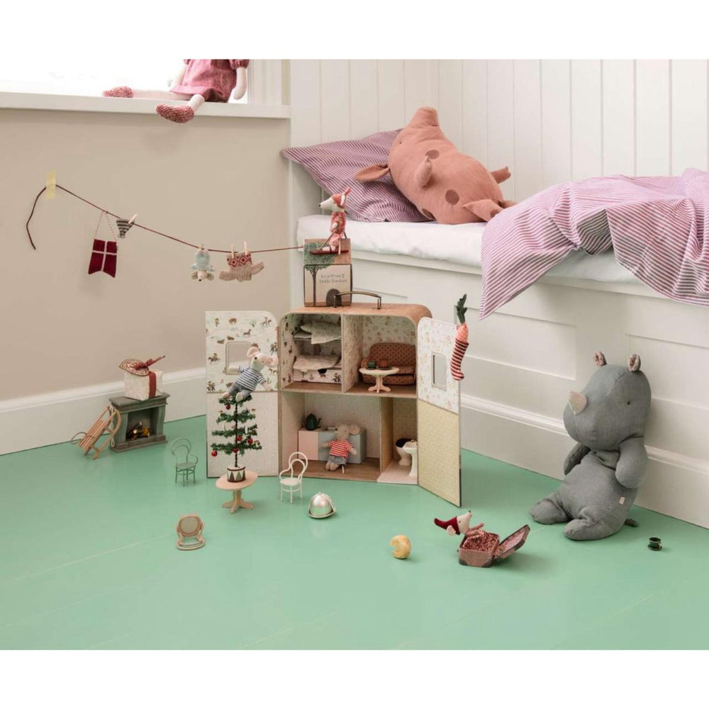 Introduce your child to the enchanting world of imagination with the Maileg SuitCasa, perfectly sized for the Littlesøster and Lillebror Mus. This charming, portable dollhouse comes with 2 sets of soft bedding, ensuring a cozy environment for little mice friends. Enhance creativity by decorating the space with additional miniature furniture pieces available for purchase. Ideal for young children, this dollhouse fosters development through play, promoting both engagement and educational value while ensuring safety and ease of use. A delight to store and maintain, it’s the perfect addition to any child’s playroom, offering endless hours of imaginative fun. Age: +3 Materials: Cardboard/Metal/Cotton Washing instructions: Textile: Machine wash at 30 degrees C. Cardboard: Wipe with a damp cloth.