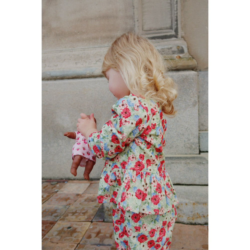 Introducing the Konges Sløjd Multi Kallis Doll, a delightful and huggable companion for children. Crafted from soft materials with lifelike eyes, Kallis promotes engagement through pretend play. This darling doll, dressed in a soft cotton dress, ensures safe and easy handling for little ones. Ideal for nurturing imaginative skills, Kallis is a perfect playmate from an early age, offering both entertainment and gentle comfort. Lightweight and simple to maintain, she fits seamlessly into the active, ever-changing world of a child.