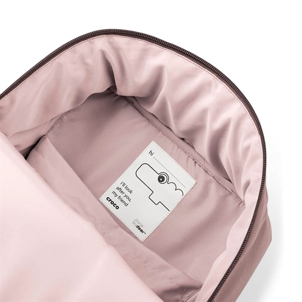 Meet the Done by Deer Backpack Croco Powder, the perfect companion for your little adventurer's daily journeys! Crafted from 22 recycled PET bottles, this backpack not only promotes sustainability but is also equipped with a water-repellent surface and a waterproof two-way zipper, ensuring belongings stay dry and secure. The adjustable shoulder and sternum straps provide a snug fit while the smart compartment design with additional pockets, including a side pocket for a bottle, enhances organization. The playful crocodile scale design and cute sleeping Croco make each outing fun and exciting for your child. With its ease of use and maintenance, this backpack is ideal for everything from school days to weekend trips, combining comfort, versatility, and a dash of whimsical charm.