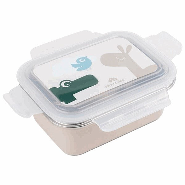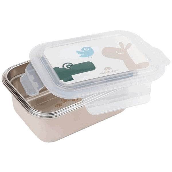 Discover the charm of mealtime with the Done by Deer Metal Lunch Box featuring lovable characters Croco, Lalee, and Birdee, all set against soothing sandy beige tones. This lunch box, designed with children in mind, combines safety, simplicity, and fun. It meets rigorous safety approvals and certifications, ensuring it's perfectly suited for little ones. The user-friendly design prioritizes your child's comfort and makes it easy to handle, while the box's sturdy construction promises trouble-free maintenance and effective storage organization. Not only is it versatile for a variety of snacks and meals, but the delightful images also stimulate and entertain your child, making lunchtime both engaging and joyous. Whether at school, on a picnic, or at a park, this lunch box turns mealtime into a playful adventure.