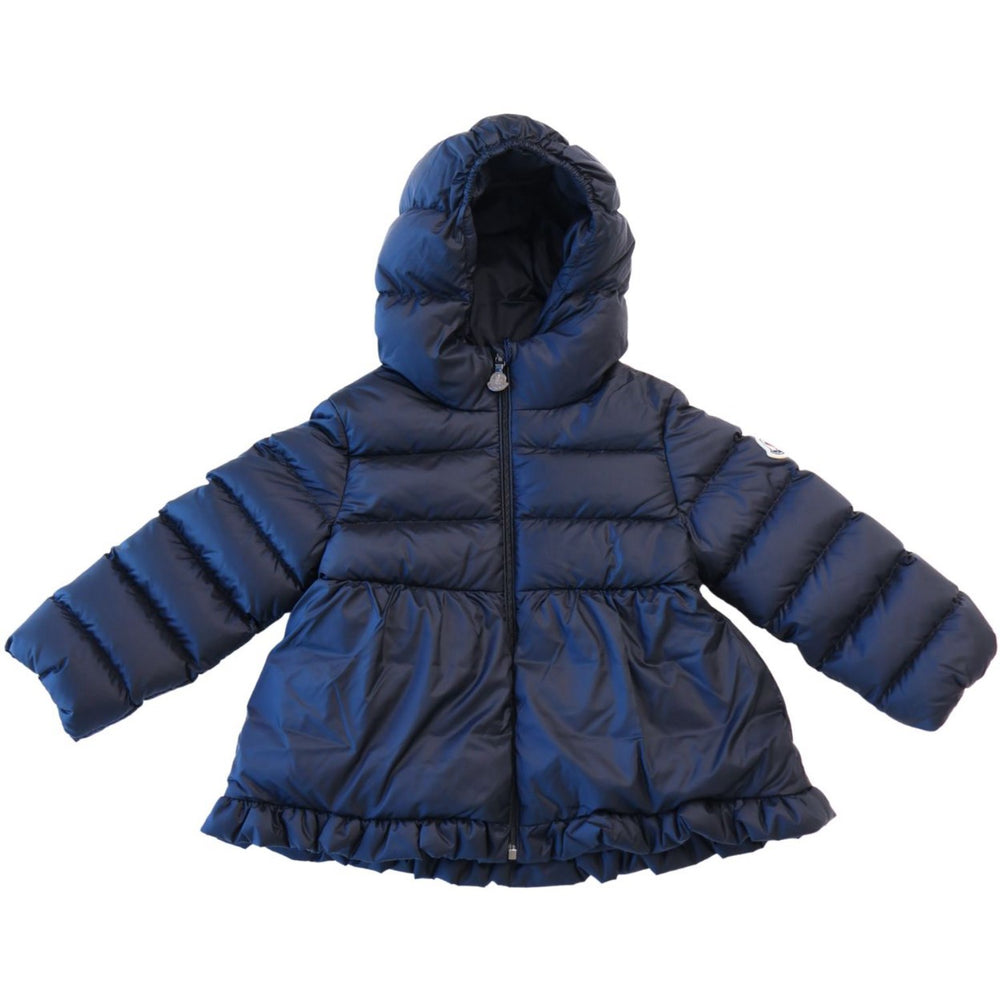 Wrap your little one in luxury with the Moncler Navy Odile Jacket. Perfect for chilly adventures, this down-filled delight ensures warmth and comfort with its snug hood and elastic cuffs. Its A-line silhouette and playful ruffled hem add a dash of whimsy, while the recycled longue saison fabric supports sustainability. Zip up and step out in style!