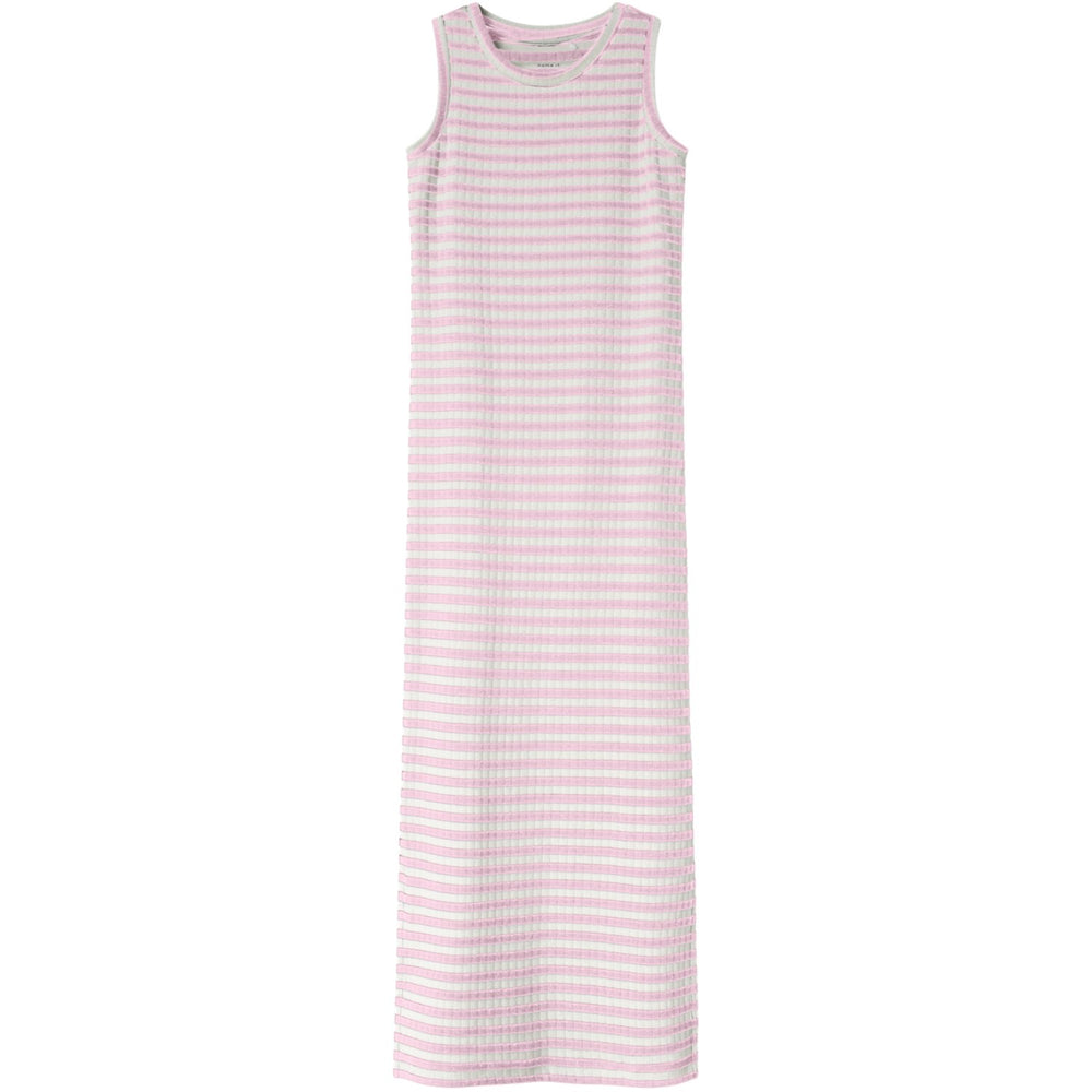 Dress your little one in the Name It Ballerina Suraja Maxi Dress Noos, perfect for adding a splash of color and style to their spring and summer wardrobe. This sleeveless, slim-fit maxi dress features a comfortable rib knit material with a vertical striped pattern, offering both elasticity and a timeless look. The round neck design enhances its elegance, making it a stylish yet practical choice for ensuring your child stays comfortable while playing. Ideal for seasonal transitions, this dress promises durability and easy care, perfect for both special occasions and everyday wear.