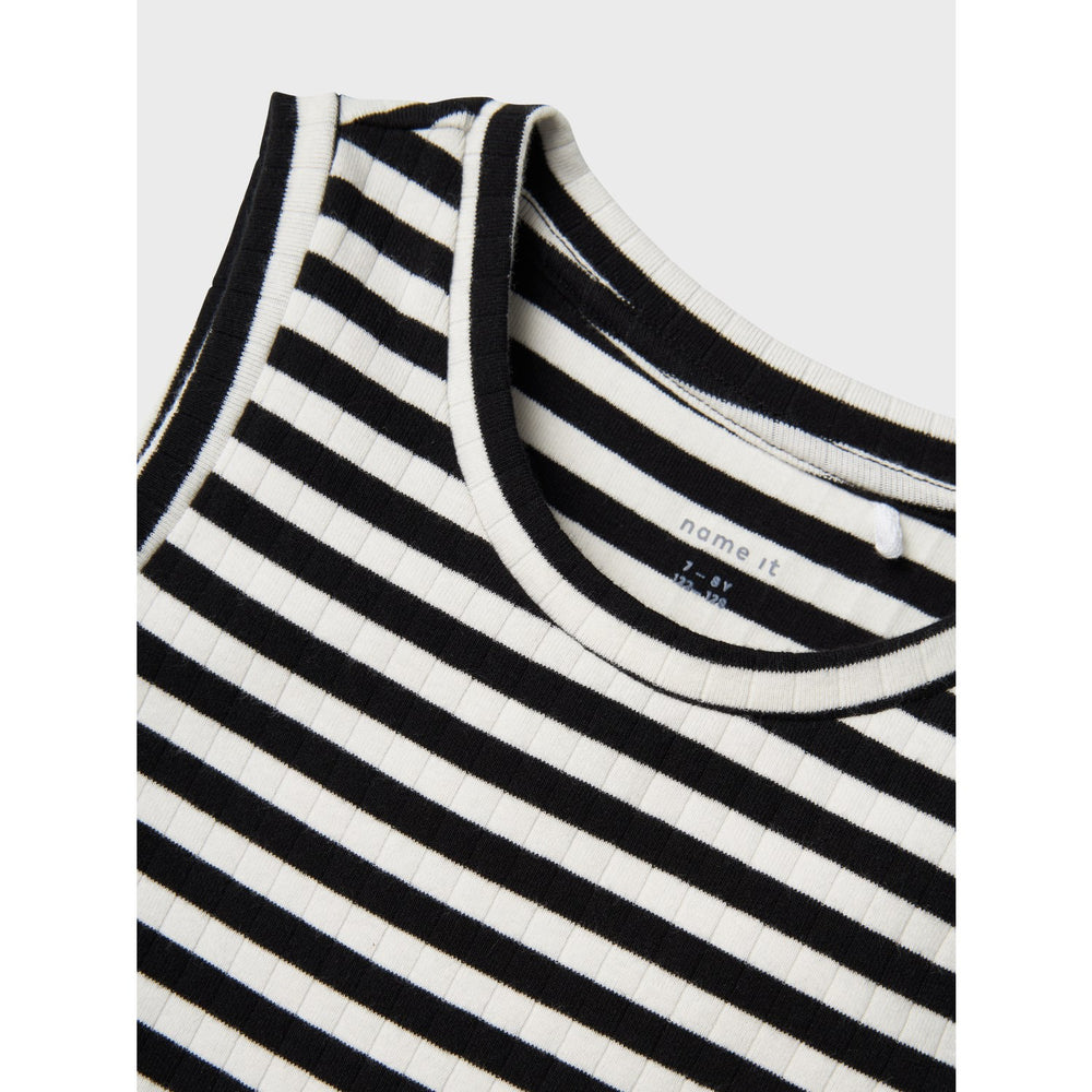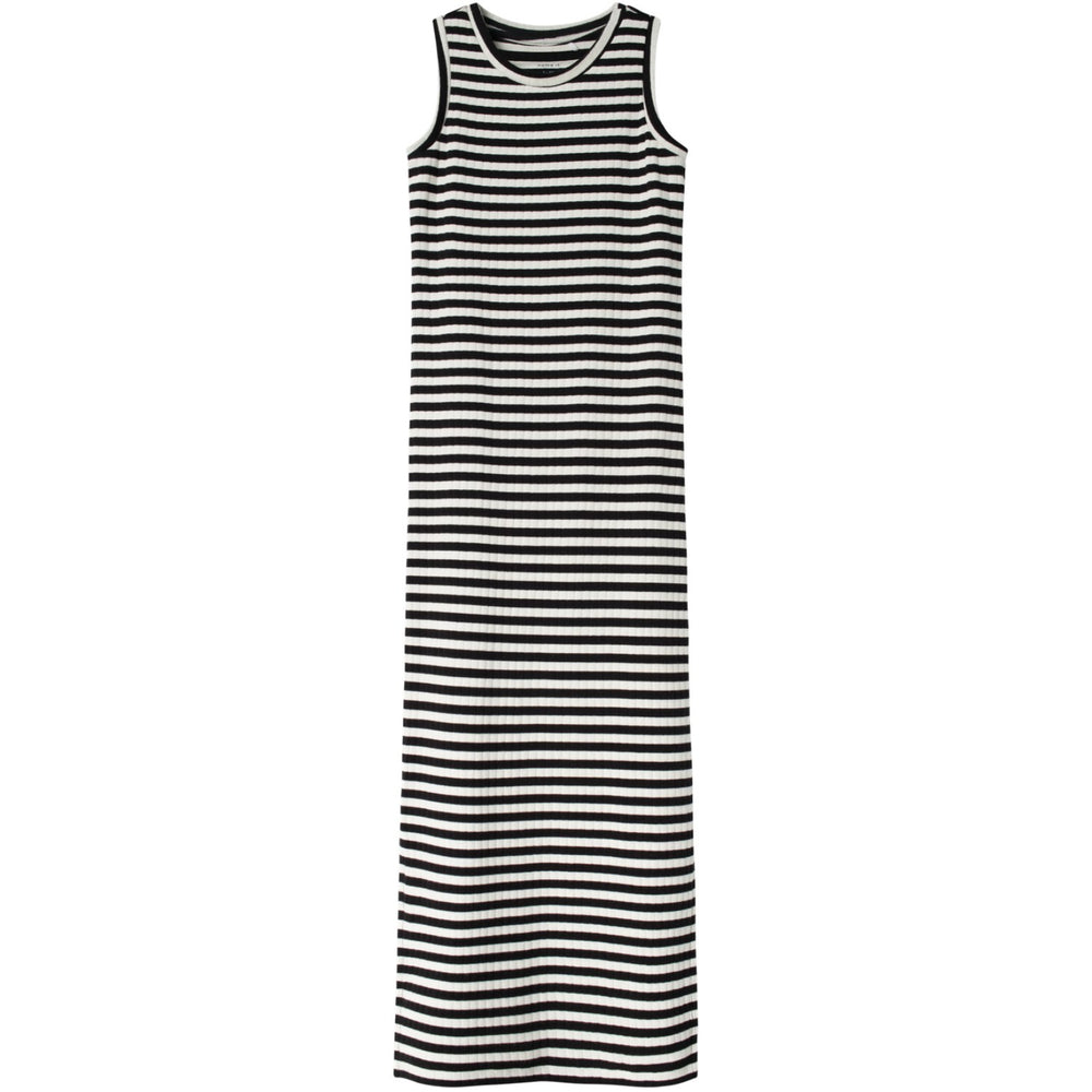 Introduce a touch of elegance to your child's closet with the Name It Bright White Suraja Maxi Dress Noos. Crafted from elastic rib knit material which creates a comfortable feel, this dress features a stylish vertical striped pattern. Its sleeveless design and round neck top off its chic, timeless appearance. This maxi dress comes in a slim fit, perfect for ensuring easy movement during both spring and summer activities. Easy to care for and brimming with charm, this dress promises to keep your little one looking adorable and feeling comfortable all day long.