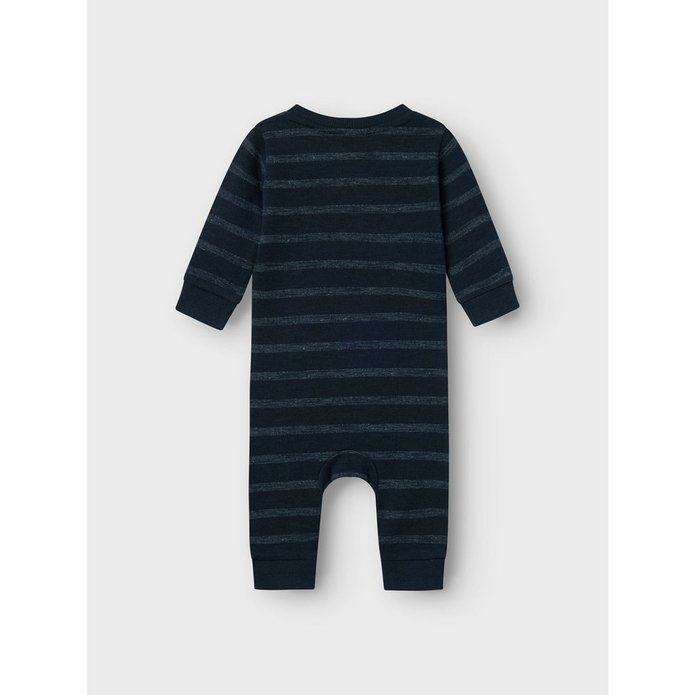 Dress your little one in the Name It Dark Sapphire Sandel Onesie, a blend of comfort and style. Made from soft, stretchy jersey, this jumpsuit offers unrestrictive movement and a snug feel, perfect for play and rest. It features a chic dark sapphire hue with easy press stud fastenings for quick changes. Adorned with delicate button details, this outfit keeps your child not only comfy but also stylish. Please note, to ensure safety, keep this garment away from fire.