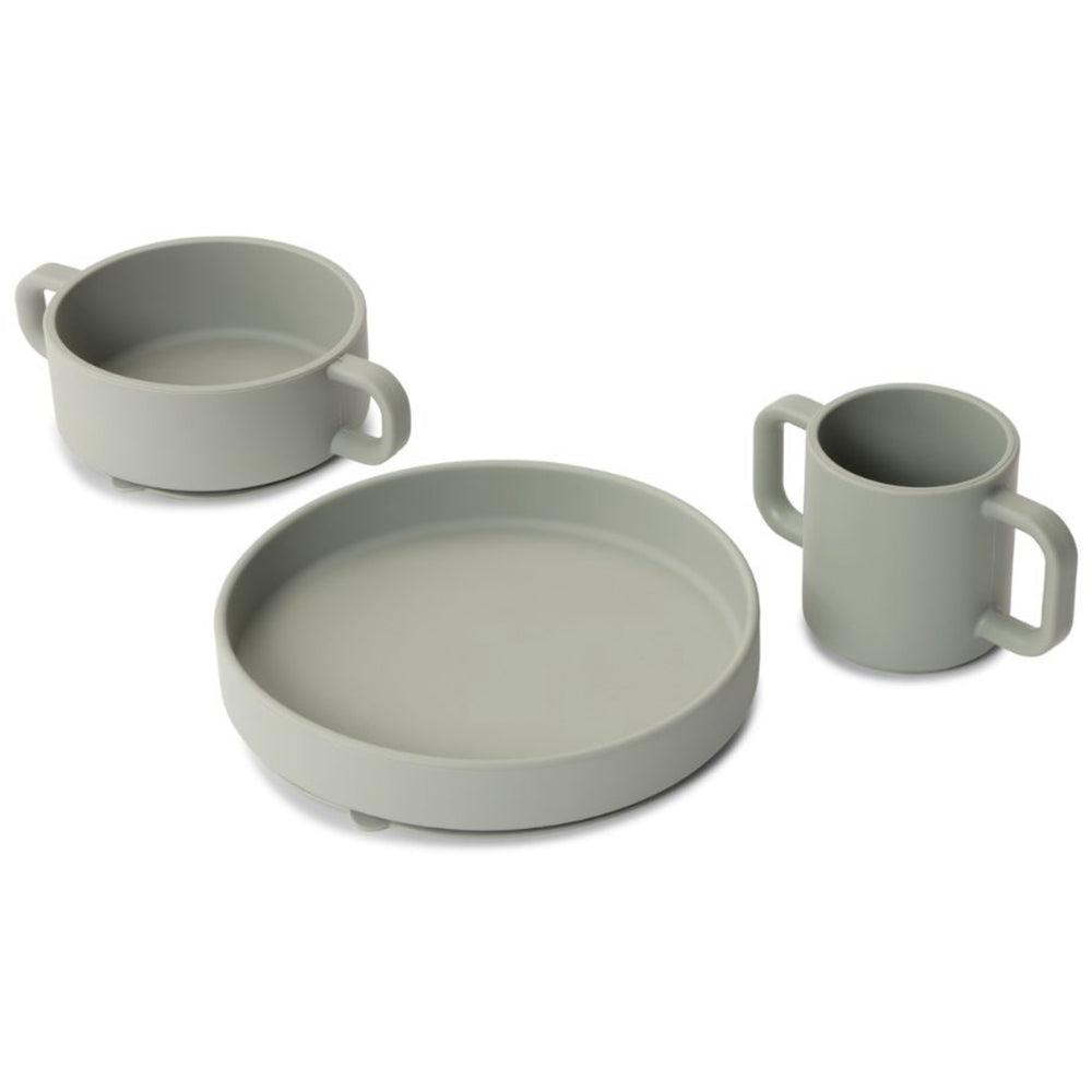 Make mealtime more enjoyable and mess-free with the stylish Everleigh & Me Charcoal Dinner Set, designed specifically for your little ones. This three-piece set includes a plate with a high rim, a deep plate with easy-to-grasp handles, and a cup with large handles, perfect for small hands. Thanks to the innovative suction cup feature, each piece firmly attaches to any surface, preventing spills and messes.