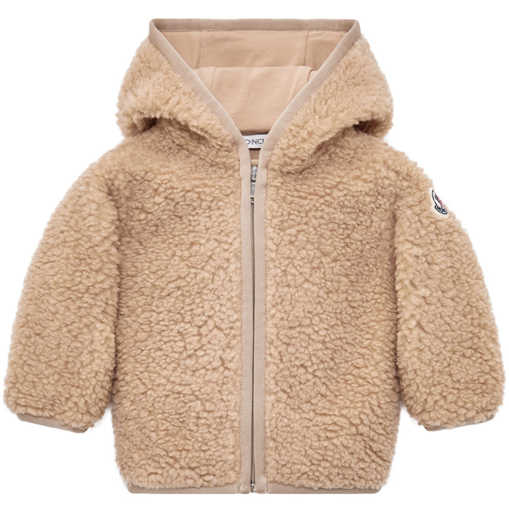 Perfect for chilly adventures, our Moncler Brown Zip-Up Cardigan wraps your little cub in cozy warmth. Made with plush teddy fleece and a comforting cotton jersey lining, this cardigan features adorable bear ears on the hood, making your child look as cute as they feel comfortable. The smooth zip fastening makes dressing quick and fuss-free, ensuring more time for play. Ideal for layering, it’s a must-have for any tiny trendsetter's wardrobe.