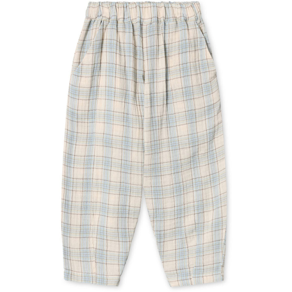 Discover our charming Fliink Sandshell Check Cha Cha Pants, crafted from soft woven muslin cotton, offering supreme comfort and breathability for your little one. The loose fit and elastic waist ensure ease of movement, while stylish side pockets add a functional touch. Adorned in a subtle check pattern, these trousers are versatile in style and color, perfect for pairing with matching shirts. Constructed for longevity, they are easy to care for, requiring only a gentle machine wash. Ideal for daily wear, these pants promise both durability and endless comfort.