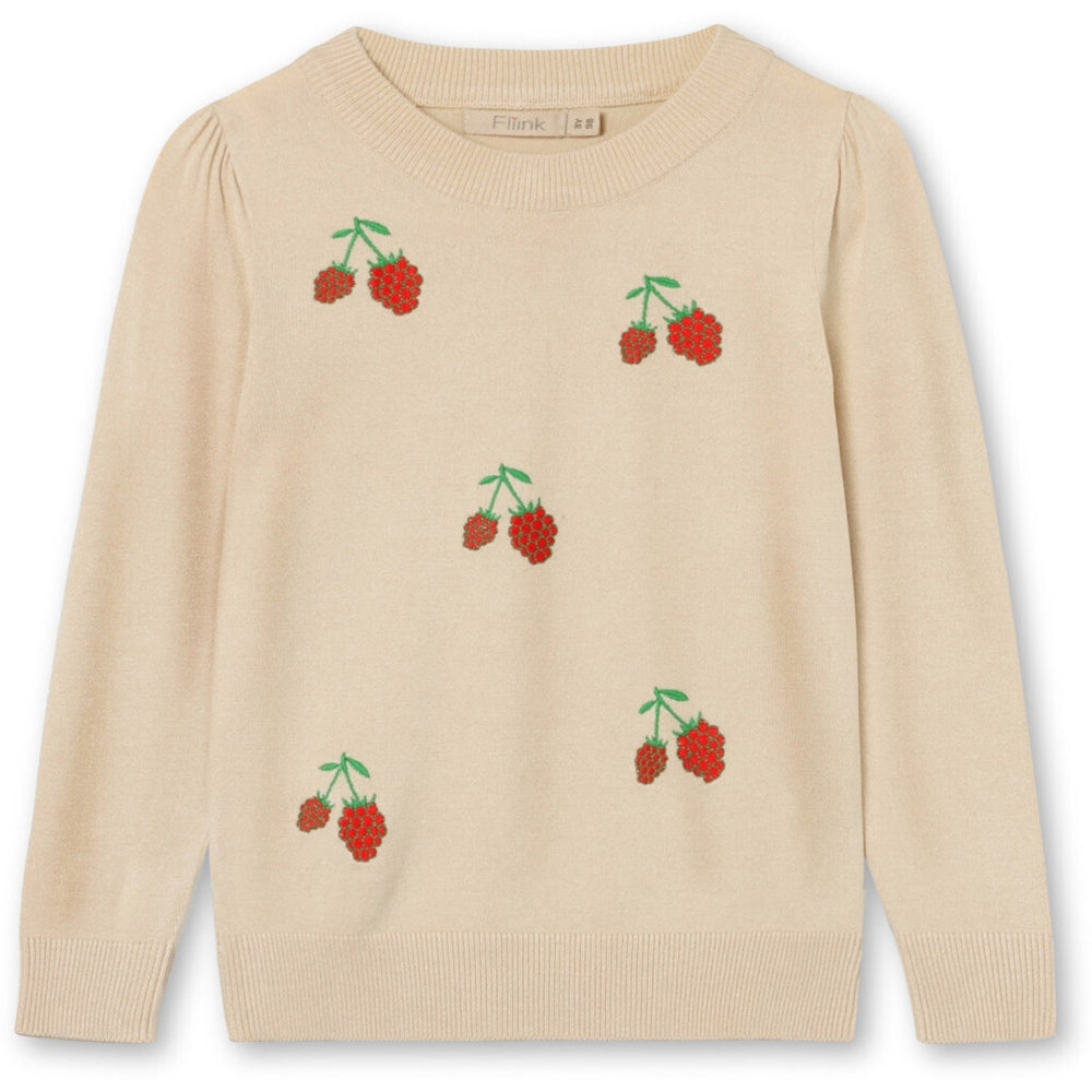Introduce your little one to the charming Fliink Sandshell Favo Embroidered Blouse, perfect for their wardrobe! Crafted with 80% LENZING™ ECOVERO™ viscose, this blouse is not only soft and light but also environmentally friendly, adhering to sustainable forestry practices. Featuring a classic fit with playful balloon sleeves and delightful embroidered raspberries, it matches effortlessly with any outfit, making it versatile for various occasions. This knitted sweater ensures comfort with its ribbed edges, while the care instructions promise easy maintenance—machine washable at 30°C on a gentle cycle. Ideal for children who love style without compromising on comfort.