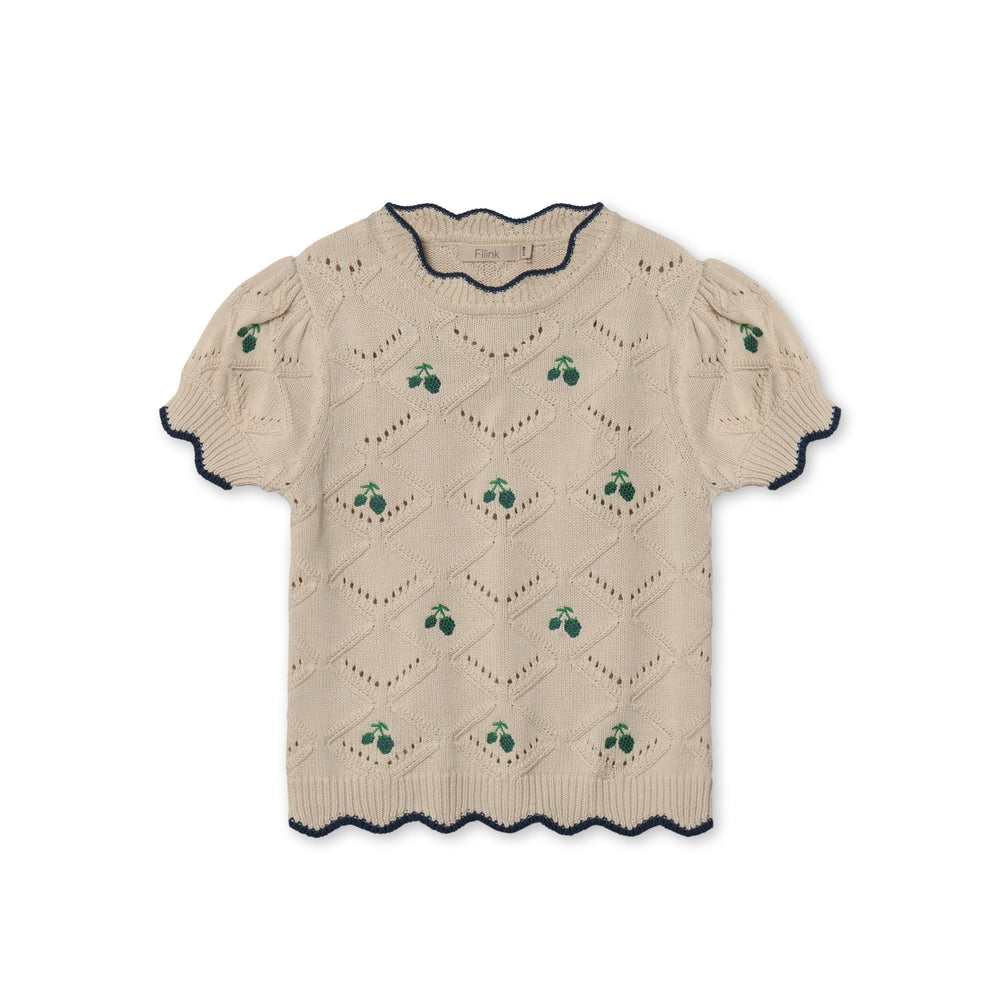 Introducing the Fliink Sandshell Mela SS Blouse, a charming mix of style and comfort for your little one. Crafted from 100% organic cotton, this blouse features adorable puff sleeves and delightful rib knit accents with striking bows. The unique blackberry embroidery and diamond knit pattern add an enchanting touch to the overall design. Sized for a comfortable snug fit, it ensures ease during wear and play. Caring for this piece is hassle-free: simply machine wash at 30°C on a gentle cycle and lay flat to dry. Perfect for your child's everyday whimsy and comfort!