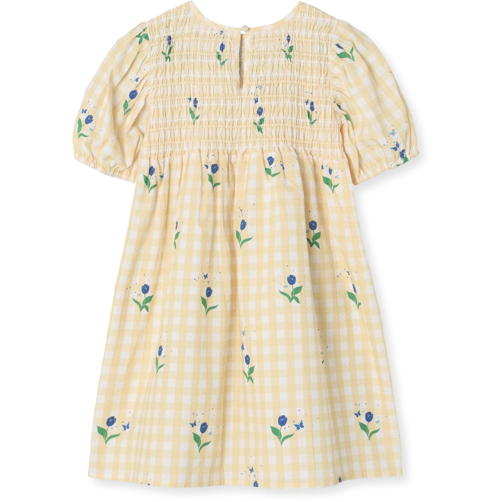 Watch your little one bloom in our Fliink Sunlight Flower Agnes Dress! Crafted from 100% cotton, this charming summer dress showcases a whimsical check and butterfly print. It features comfy smocked chest details and a floaty skirt perfect for playful twirls. The sweet, puffed short sleeves and soft bowed collar add a touch of magic, while the back button ensures easy dressing. Ideal for sunny day adventures or picture-perfect occasions, this dress keeps them cozy and stylish all day long! Simply machine wash and ready for round two of fun!