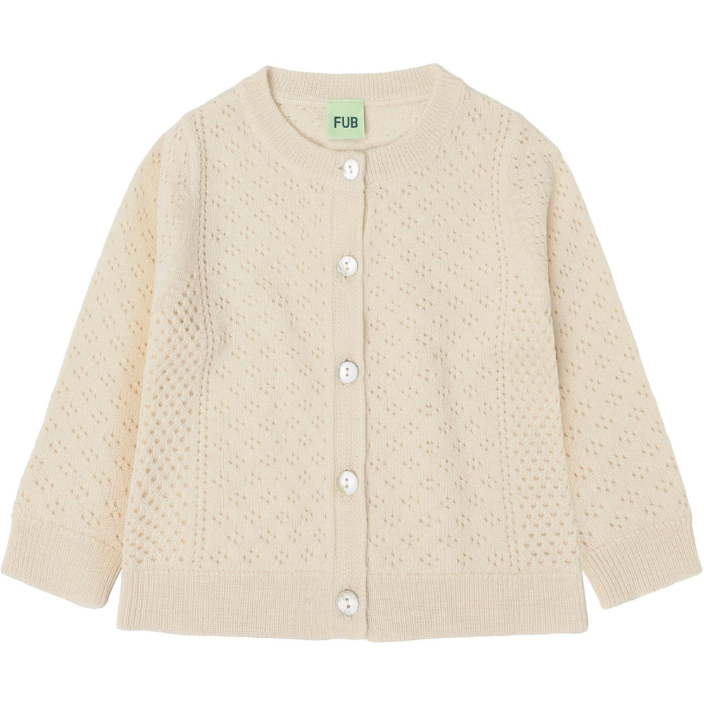 Not only is this cardigan stylish and comfortable, but it also boasts a practical design. The premium quality merino wool is treated with an eco-friendly technology, allowing it to be machine washable without the use of harsh chemicals. Ideal for effortless daily wear, the FUB Ecru Baby Pointelle Cardigan combines timeless design with functional features, keeping your child warm and fashionable all day long.