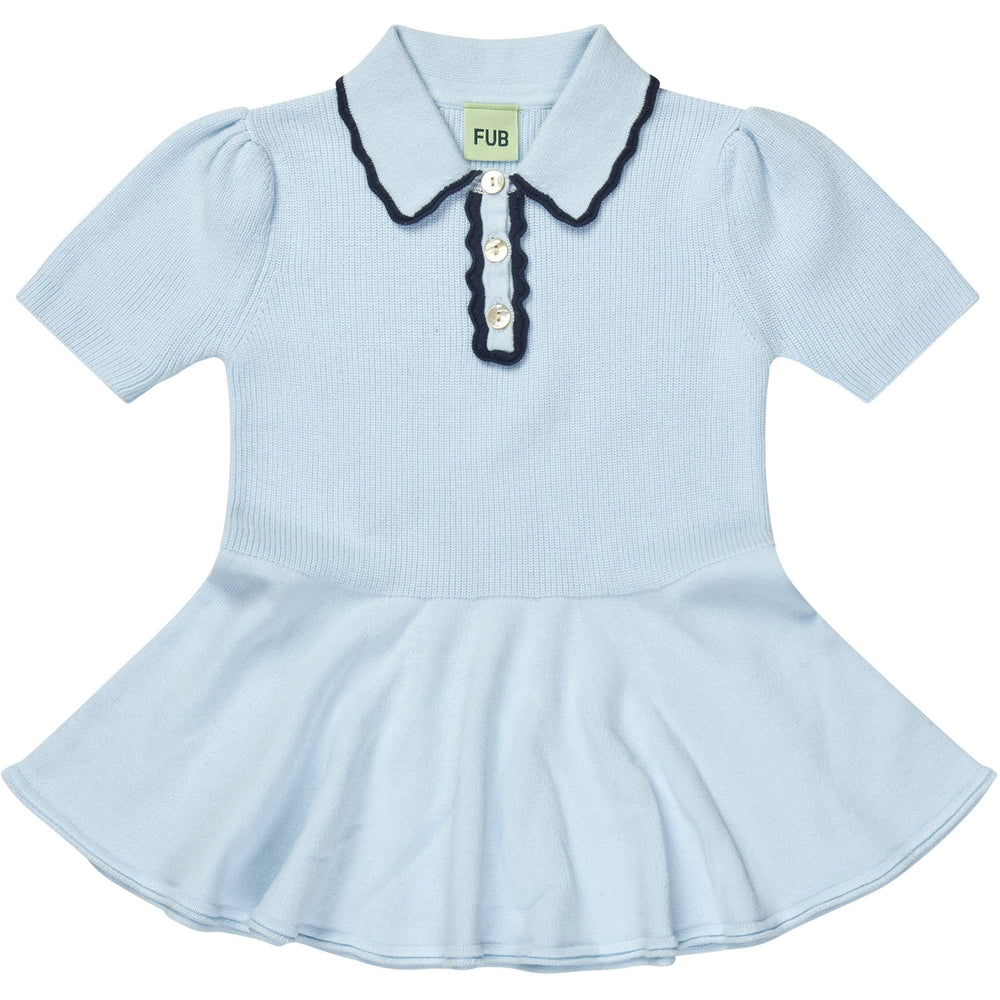 Introduce your little one to the charm and comfort of the FUB Light Blue Peplum Shirt. Crafted from 100% certified organic cotton, this delightful shirt is both gentle on the skin and environmentally friendly. The classic rib-knit upper meets a playful single jersey peplum skirt, accented with short puff sleeves and a shirt collar detailed with contrasting lace. Pearl shell buttons add a touch of elegance to the front closure, complementing the shirt's soothing light blue hue and intricate patterns. Perfectly blending style with comfort, this shirt offers a regular fit that is designed to accommodate the playful activities of children. Its durable fabric ensures long-lasting wear, making it a practical and stylish choice for your child's wardrobe. Whether it’s a day at school or a weekend outing, this peplum shirt is sure to elevate any young one’s outfit with its unique design and functional features.