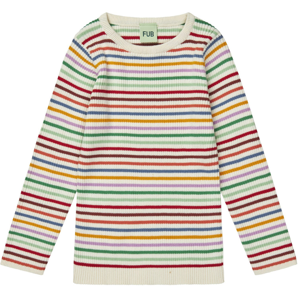 Discover style and sustainability with our FUB Multi Stripe Striped Rib Blouse. Crafted from 100% certified organic cotton, this long-sleeved blouse features a firm rib structure, ensuring both comfort and durability. It boasts a classic striped design in a multi-color palette, adding a vibrant touch to your child's wardrobe. Each piece showcases a round rib-trimmed neckline, with clean self-edges at the sleeves and bottom hemline for an immaculate finish. Ideal for everyday wear, its straight slim fit promises a modern look and easy wearability. Available in various sizes, please note the different pricing for sizes 140 and 150. Perfect for conscious parents looking to combine style with environmental consideration, this blouse ensures your child stays cozy while contributing to a greener planet.