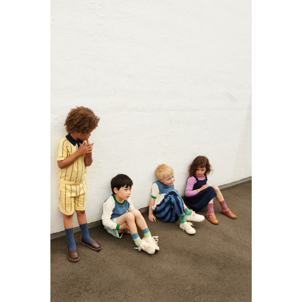 Dress your child in comfort and style with our FUB Vanilla/Dark Navy Striped Polo. Crafted from 100% certified organic cotton, this polo is gentle on the skin and eco-friendly. It features charming narrow vertical stripes with a contrasting small shirt collar and environmentally friendly corozo buttons that are biodegradable. The short raglan sleeves and ribbed hems add a dash of sporty elegance, ensuring your little one stays comfy and stylish. Available in different sizes, please be noted that sizes 140 and 150 are priced differently. Ideal for casual outings or family gatherings, this durable polo ensures both style and sustainability in your child's wardrobe.