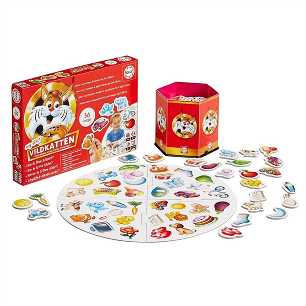 Introduce your little one to the excitement of "My First Wildcat," a captivating junior version of the classic observation game designed specifically for young children. This delightful game simplifies fun with only 36 motifs, making it easier for little hands and minds to manage. Players enhance their concentration and overview skills as they race to match picture cards with the game board images. Suitable from 2-4 participants, this game is perfect for developing social and cognitive skills during a quick, 10-minute gameplay. Crafted from durable materials, it ensures safety and longevity, even in the hands of enthusiastic toddlers. Everything needed to play is neatly packed in a convenient storage box, including a four-part game board, ensuring easy setup, portability, and tidy storage after playtime ends. Encourage quick thinking and observation skills with this engaging, easy-to-understand board game, ideal for young learners.