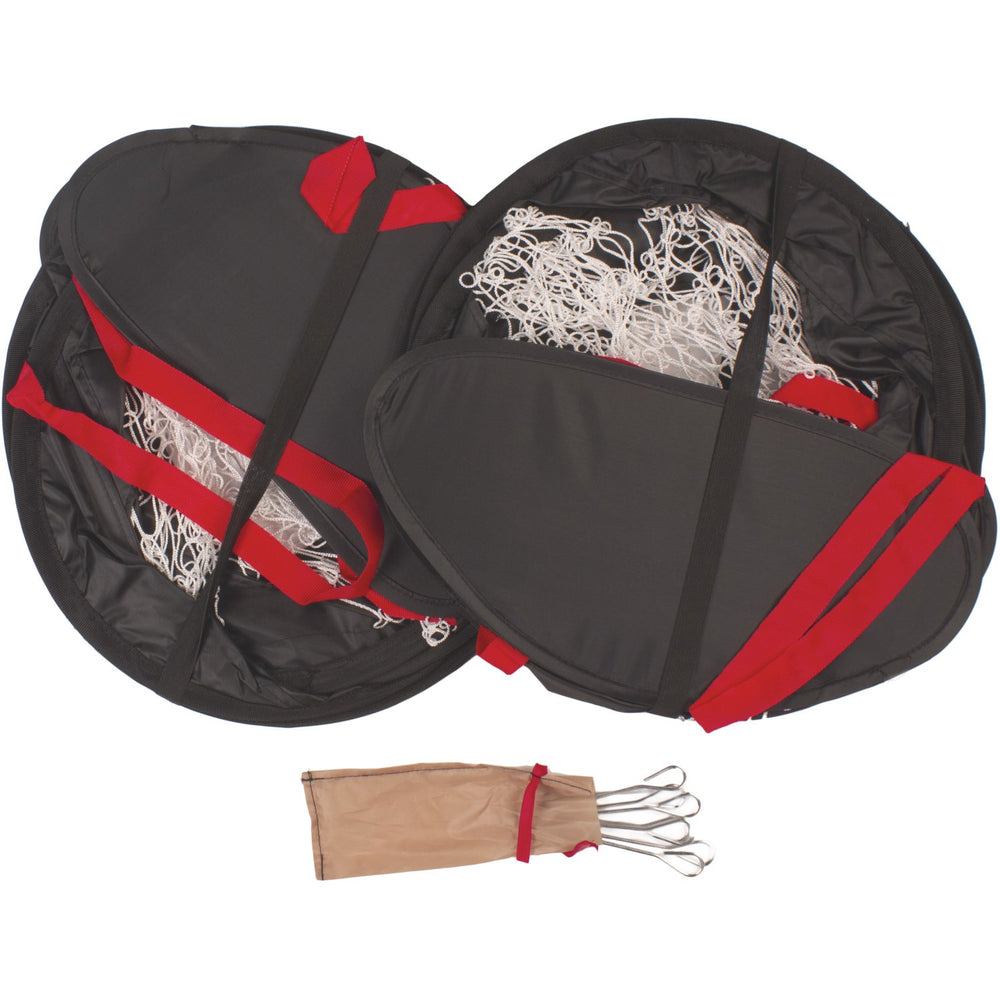 - Extra: Set of two goals Size: 120 x 80 x 80 cm Incl. carrying case Weight: 1.5 kg Incl. 8 pegs