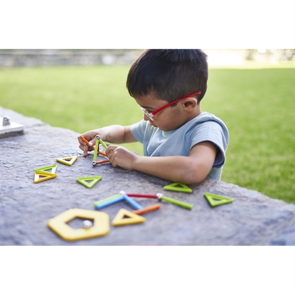 • 35 parts (magnetic bar, magnetic balls and panels in different colours and shapes)