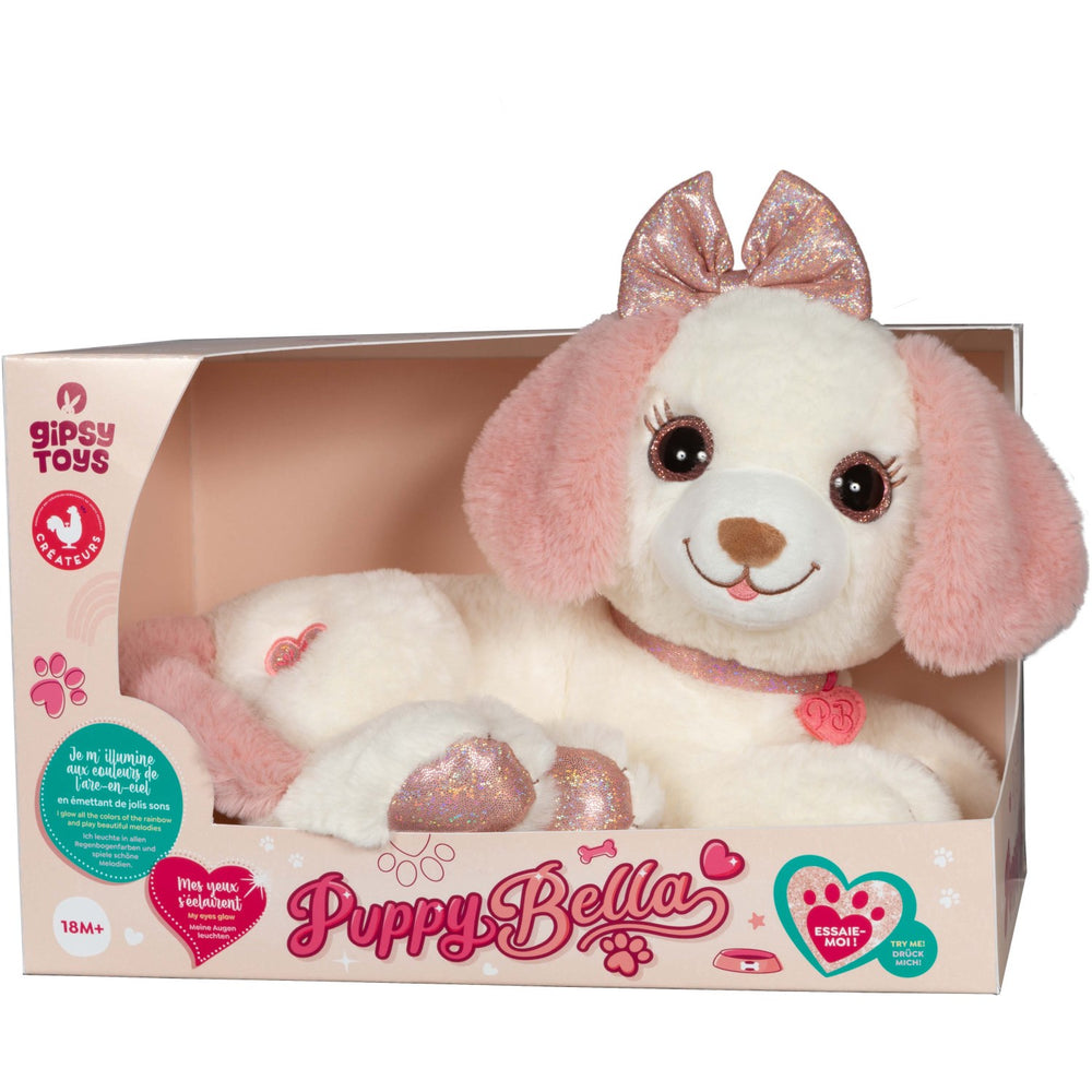 Meet Gipsy Puppy Bella, your child's new cuddly friend! This 30 cm teddy bear delights with its soft texture and vibrant, rainbow-colored lights. Featuring glowing eyes and the ability to play soothing sounds, it enhances sensory development and comfort. The convenient mute mode ensures peaceful times when needed. Perfect for children needing a sensory and comforting playmate, Gipsy Puppy Bella promises engagement and easy maintenance, making it an ideal choice for both active play and tranquil cuddle times.